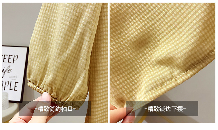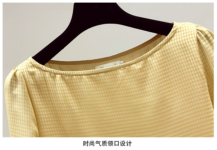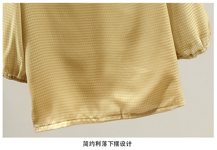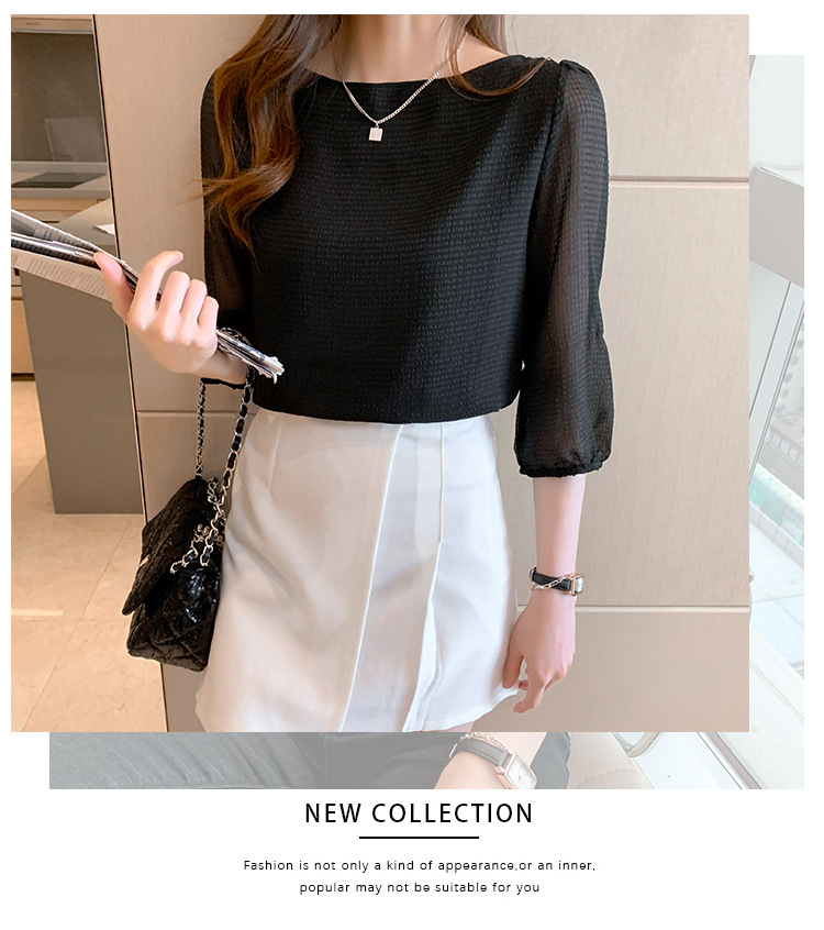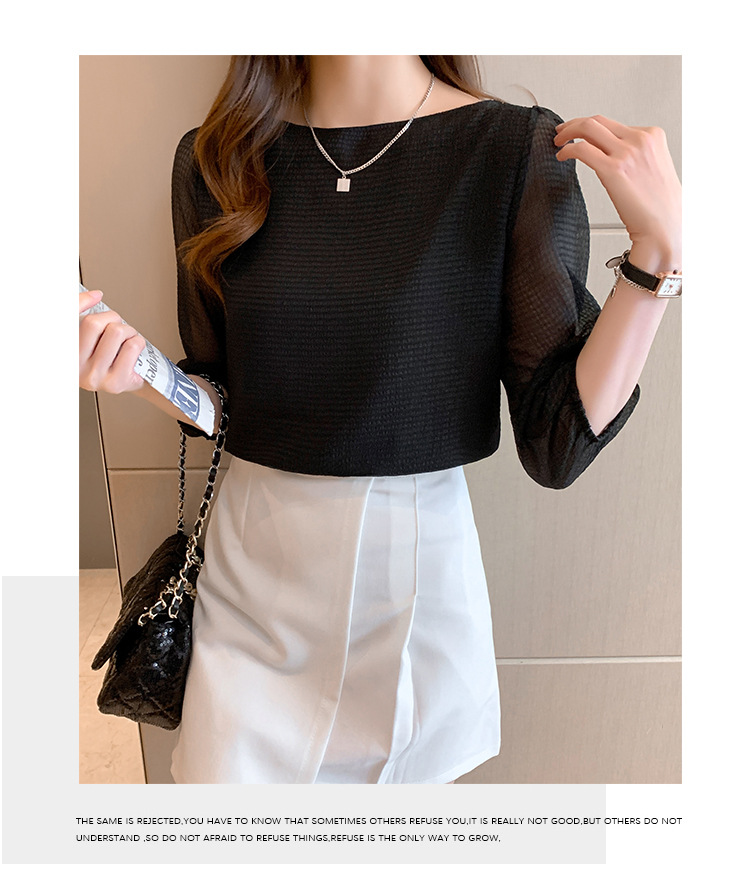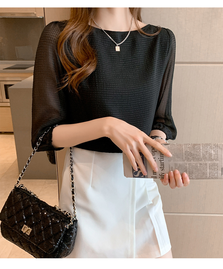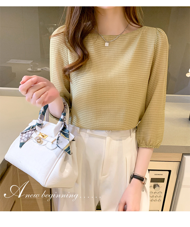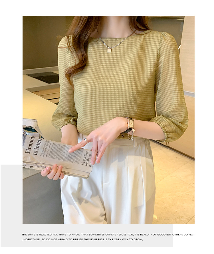 2025년 신상 여름 여성용 셔츠, 세련된 7부 소매 패션 상의, 원라인 네크라인, 루즈핏 랜턴 소매 쉬폰 셔츠스토어 가기
