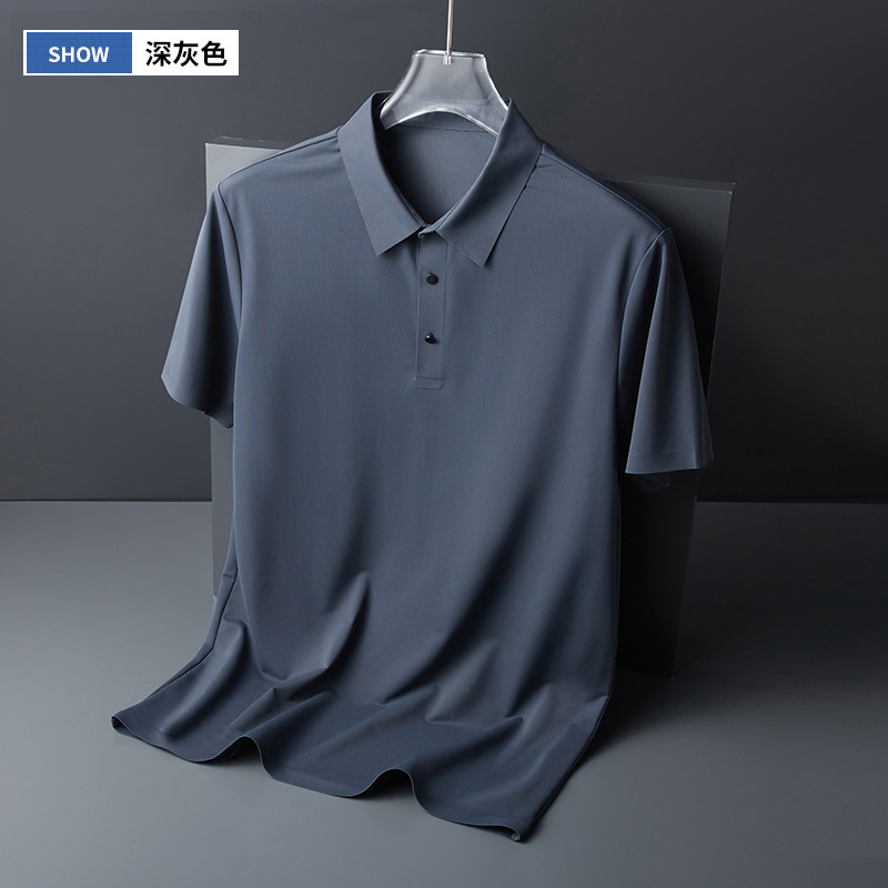 새로운 하이 엔드 폴로 셔츠 남성용 반팔 비즈니스 셔츠 여름 아이스 실크 심리스 라펠 티셔츠 탑 폴 셔츠