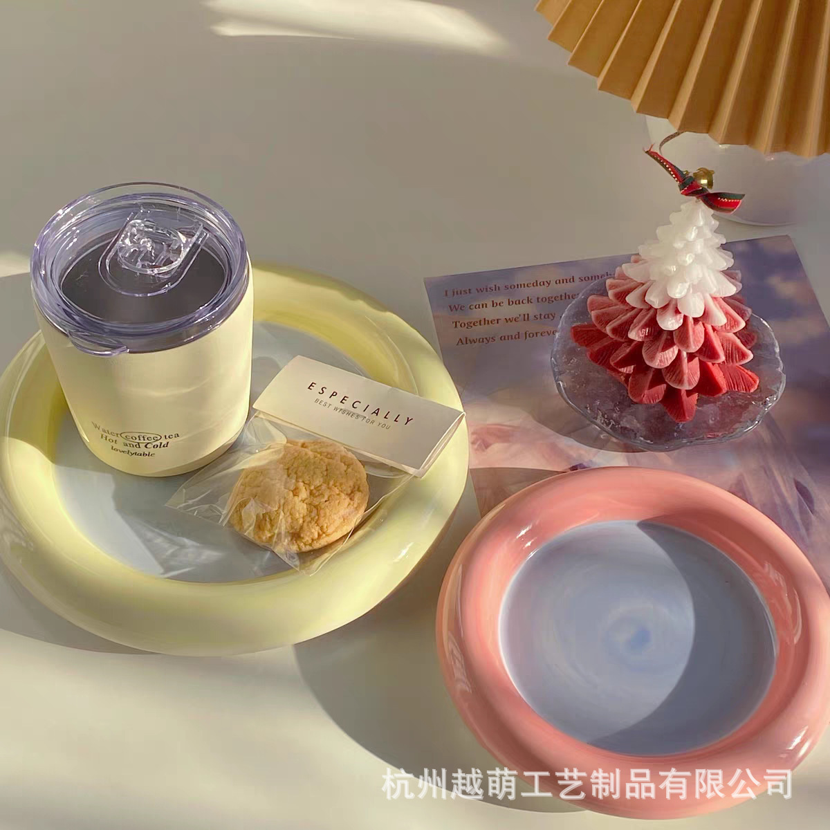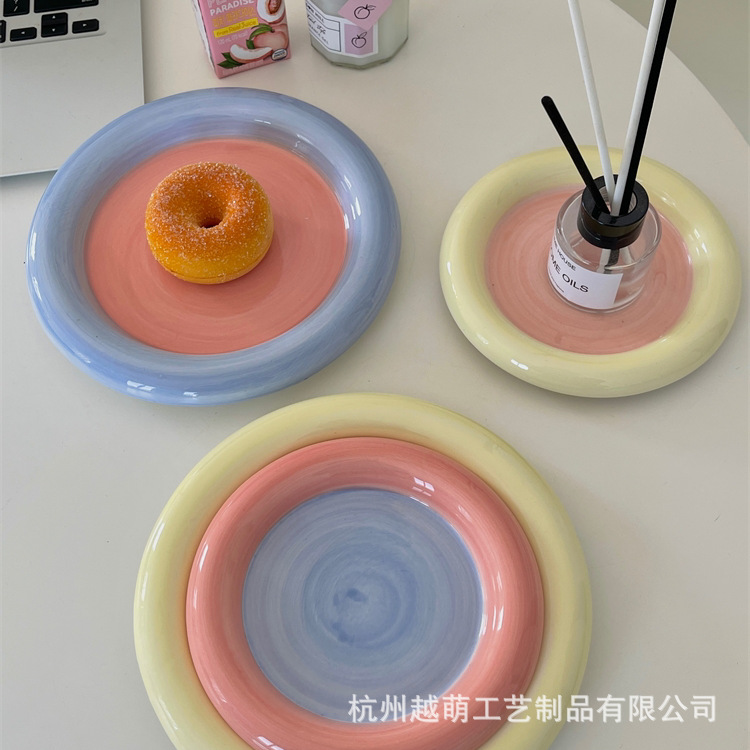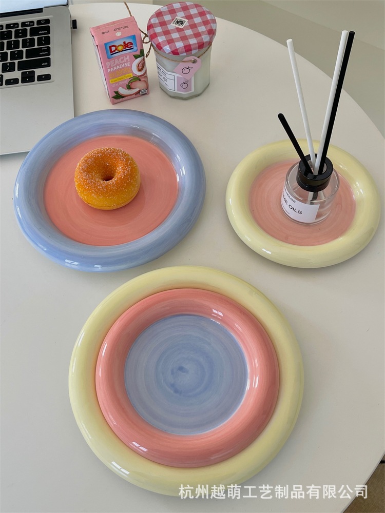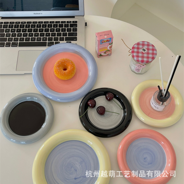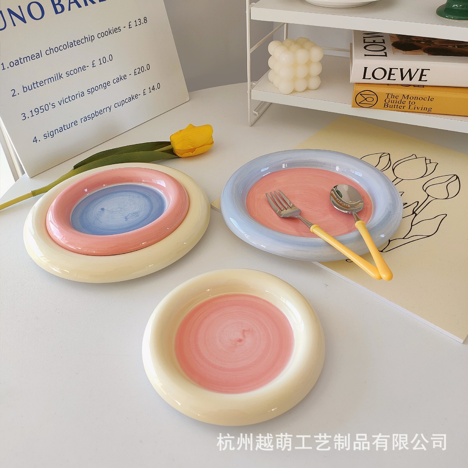S-style 크림 손으로 그린 통통 귀여운 세라믹 아침 식사 디저트 플레이트 디너 플레이트 저장 접시 고가 스몰 사이즈스토어 가기