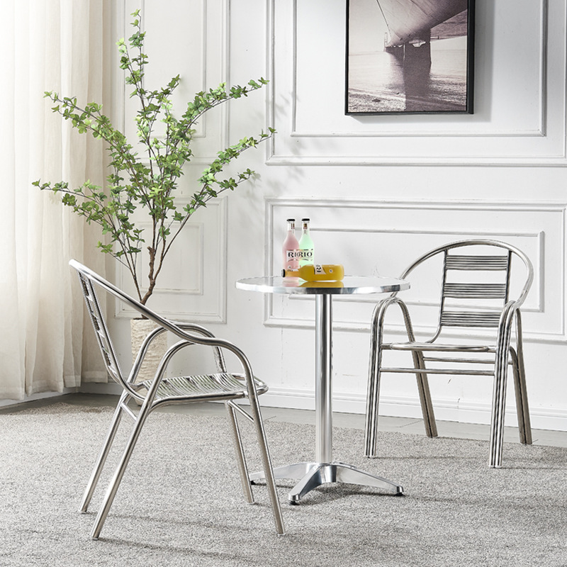 스테인레스 스틸 라운드 테이블 산업 스타일 식탁과 의자 조합 카페 바 작은 사각형 테이블 가정용 식탁 도매스토어 가기
