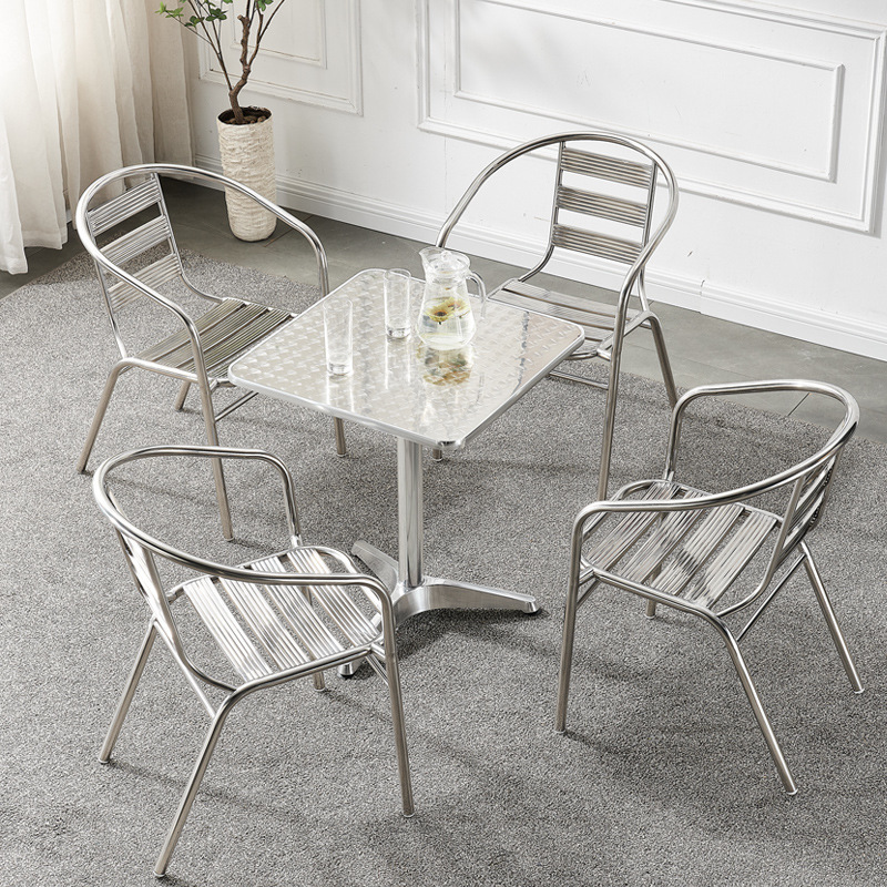 스테인레스 스틸 라운드 테이블 산업 스타일 식탁과 의자 조합 카페 바 작은 사각형 테이블 가정용 식탁 도매