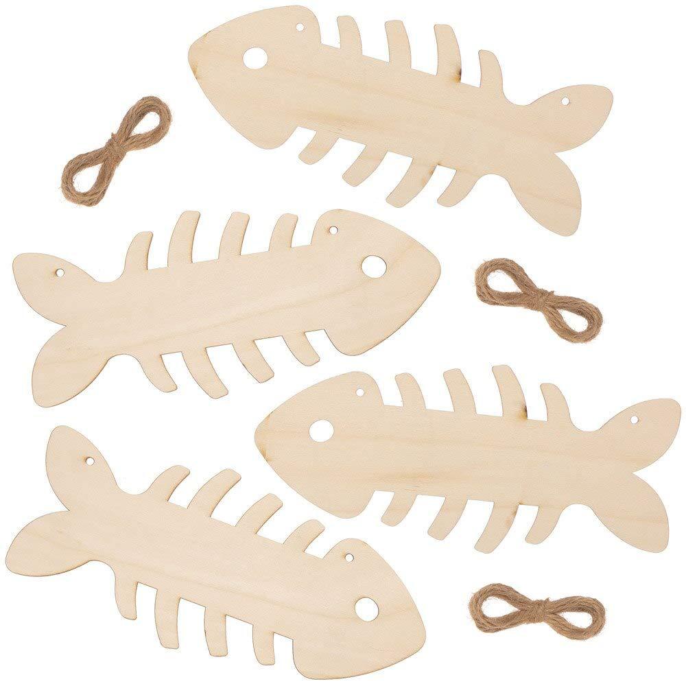 새로운 4 조각 DIY 빈 피시본 나무 펜던트 해변 해변 바람 빈 그림 작은 물고기 창조적 인 교수형 벽 장식