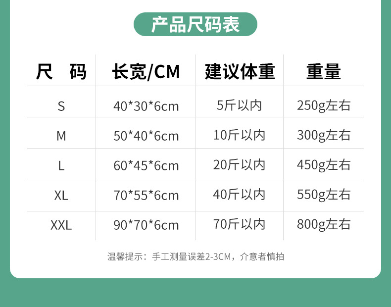 • XXL 코드 90*70cm (70kg 이내 권장)