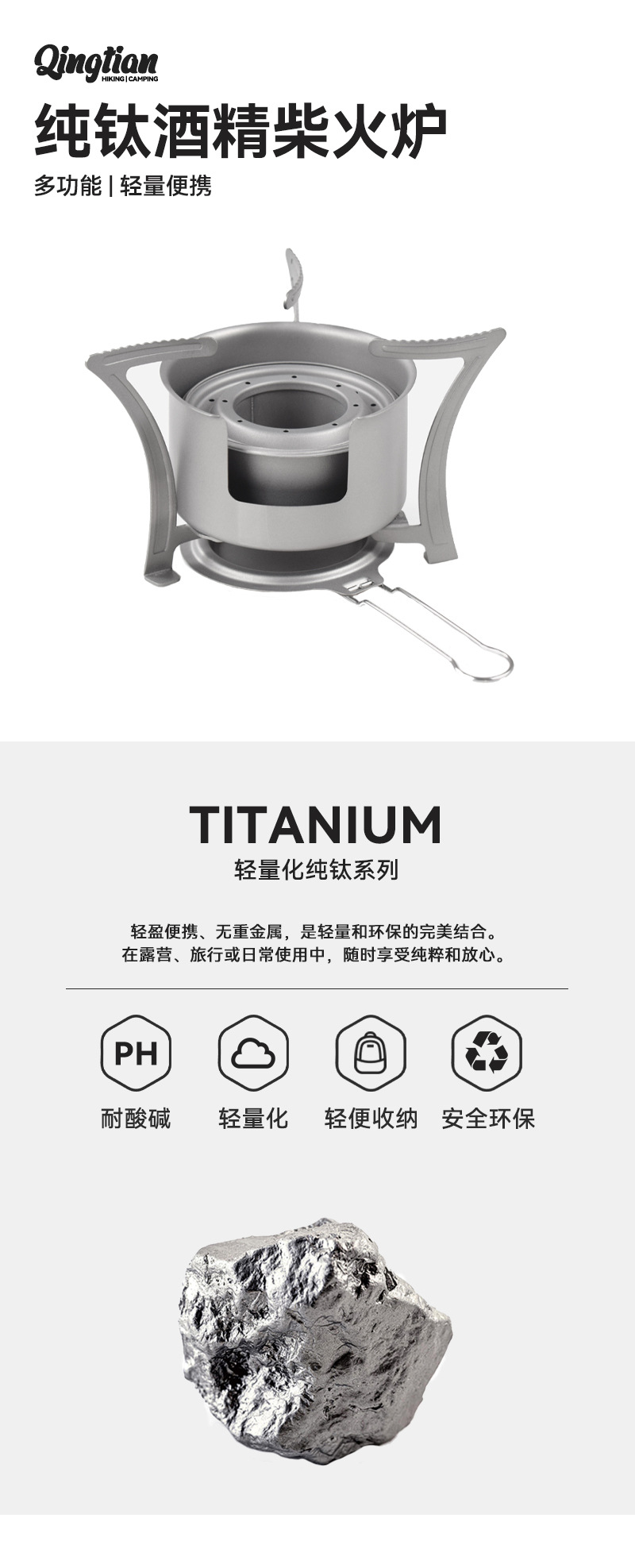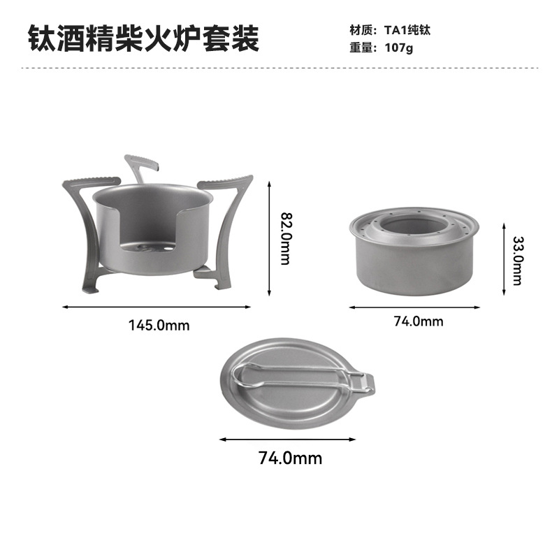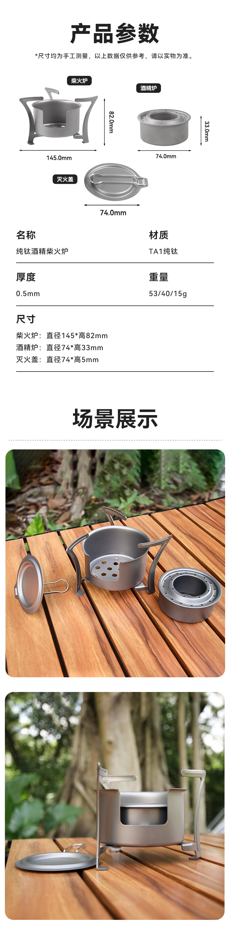 순수 티타늄 장작 난로 세트 다기능 경량 휴대용 야외 캠핑 접이식 친환경 티타늄 알코올 난로 해외 도매스토어 가기