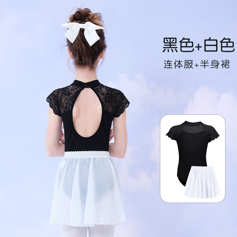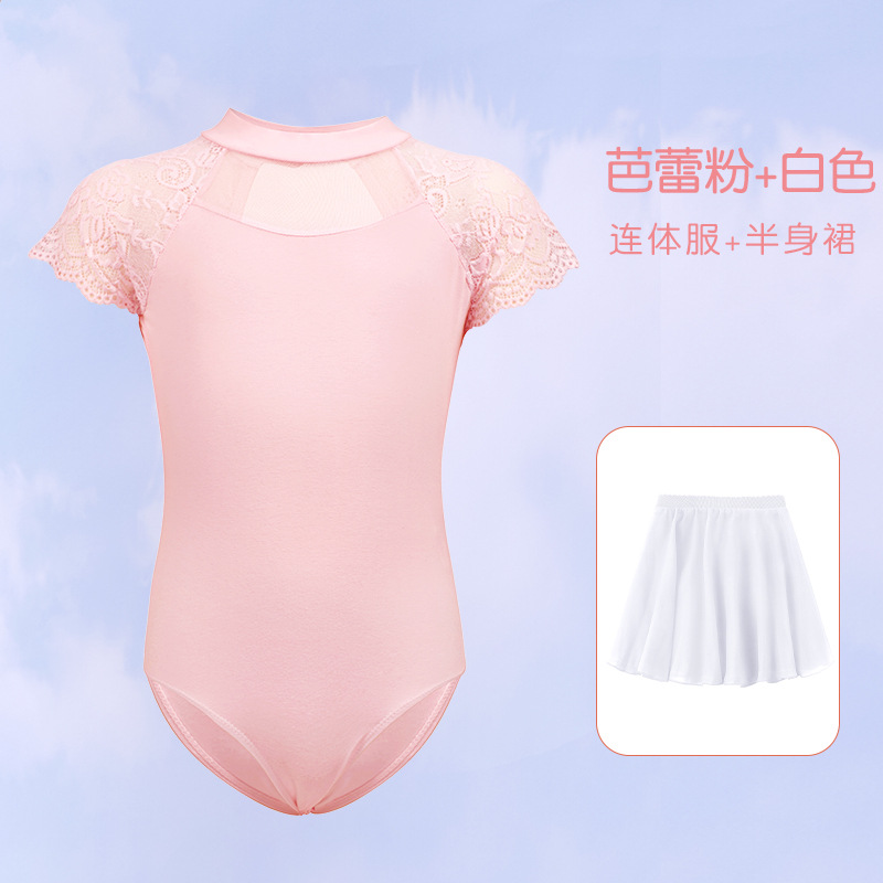 어린이 춤 세트 여름 레이스 스티치 부드러운 그물 올인원 세트 춤 의상 여아 발레 연습 세트