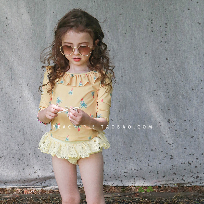 2022 새로운 한국 어린이 수영복 긴 소매 자외선 차단제 소녀 수영복 분할 귀여운 아기 유아 수영복스토어 가기