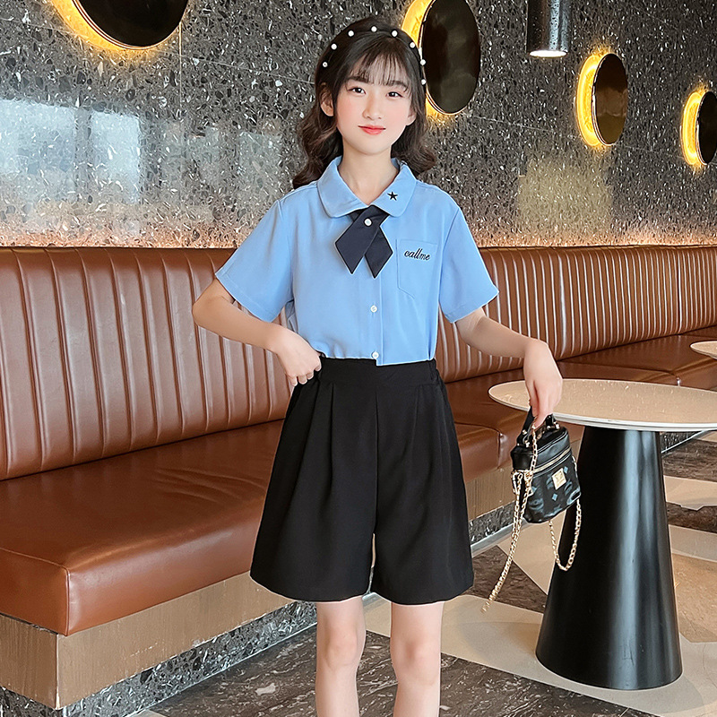 여자 쉬폰 셔츠 여름 새로운 스타일 중대형 어린이 한국 대학 스타일 셔츠 어린이 스타일 반팔상의