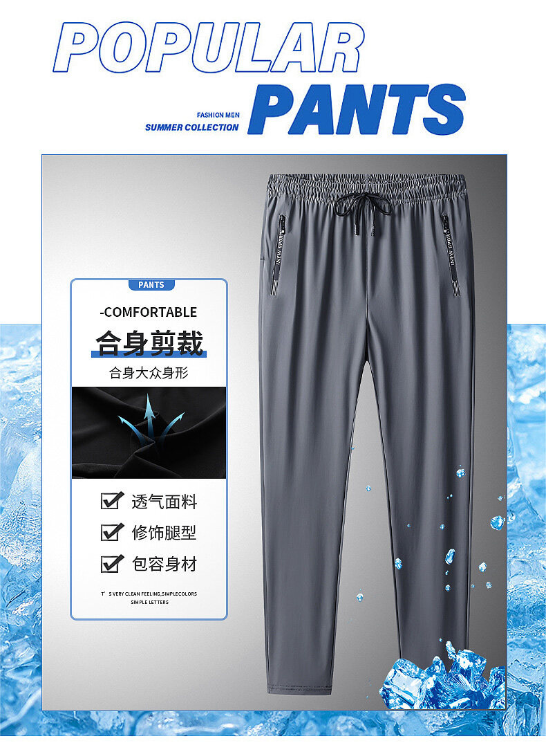 플러스 사이즈 남자 바지 빠른 건조 아이스 실크 바지 남자 바지 얼음 느낌 얇은 스포츠 바지 남자 여름 바지 캐주얼 바지