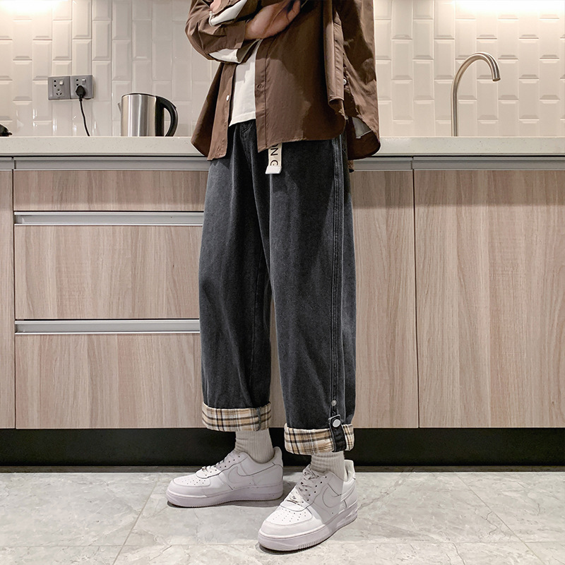 여름 새 청바지 남자의 복고풍 모든 매치 느슨한 스트레이트 와이드 레그 팬츠 홍콩 스타일 트렌디 브랜드 Ruffian 잘생긴 컬링 팬츠스토어 가기