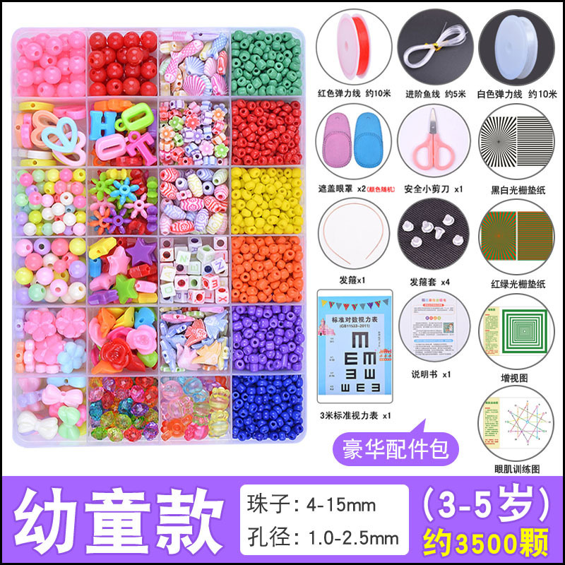 약시 훈련 구슬 어린이 장난감 원시 미세 훈련 집중 착용 비즈 퍼즐 소녀 DIY 수제스토어 가기