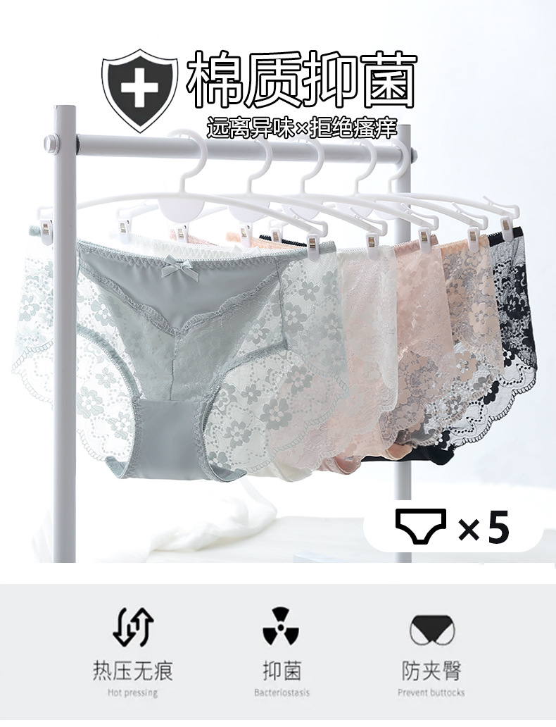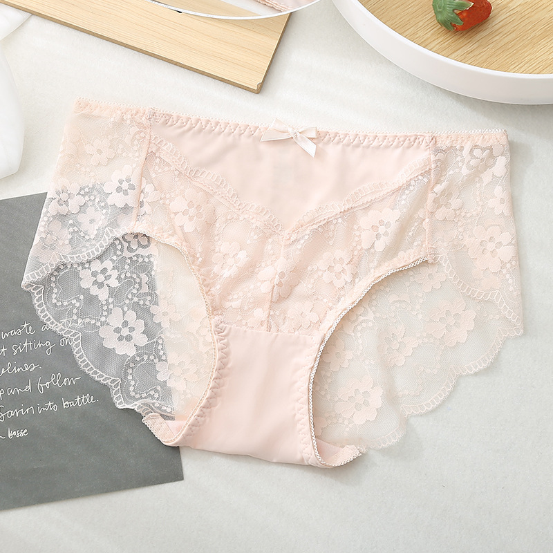 속옷 새로운 섹시한 레이스 여성 속옷 여름 얇은 중간 허리 로맨틱 부드러운 순수 코튼 가랑이 항균 통기성 팬티