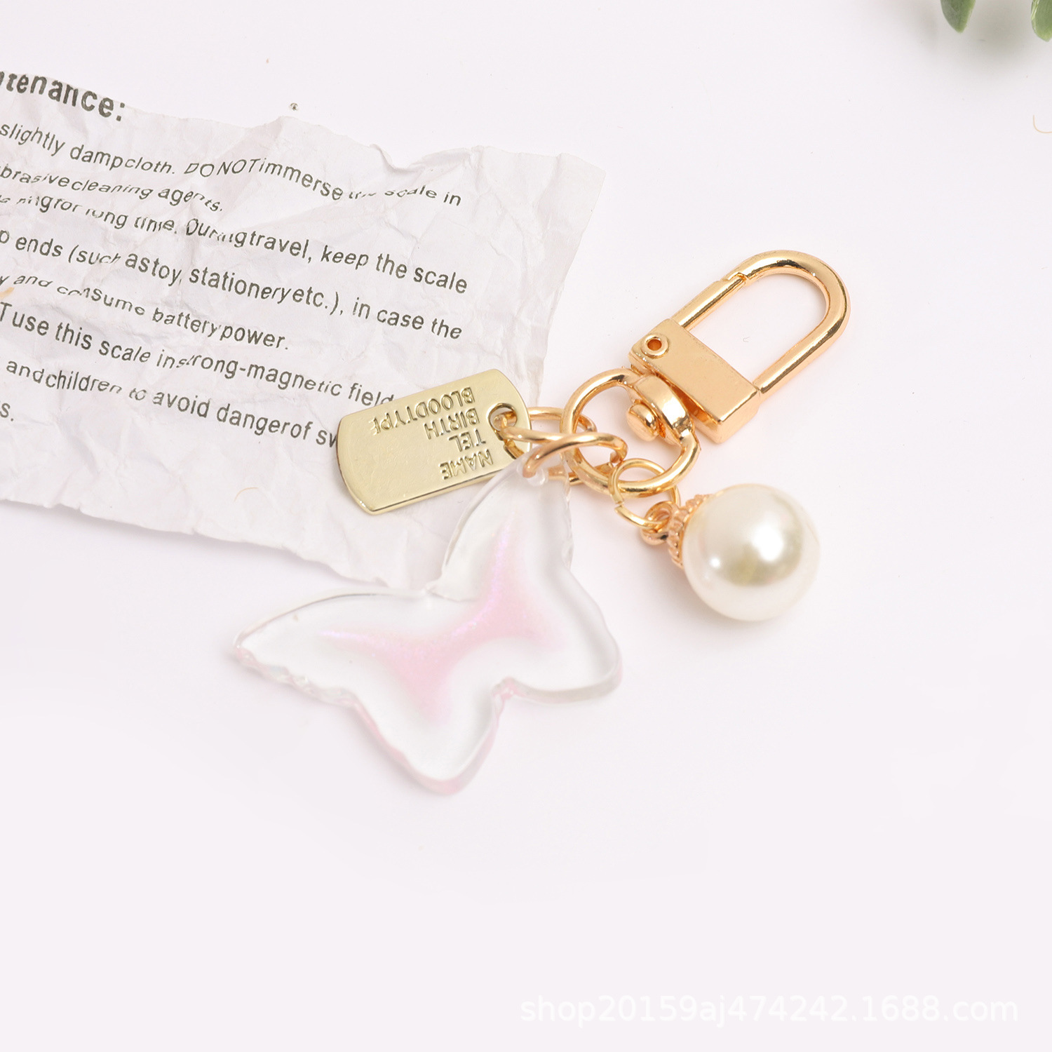귀여운 나비 합금 열쇠 고리 펜던트 작은 신선한 색 아크릴 나비 진주 액세서리 이어폰 커버 장식
