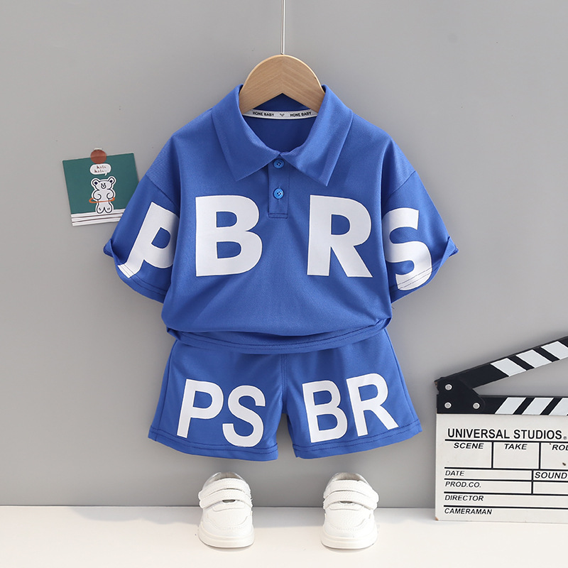 한국 스타일 여름 새로운 소년 여름 반팔 티셔츠 세트 어린이 서양 스타일 유행 대학 스타일 소년을위한 투피스 세트