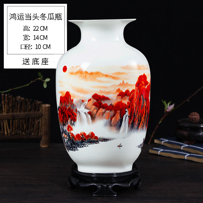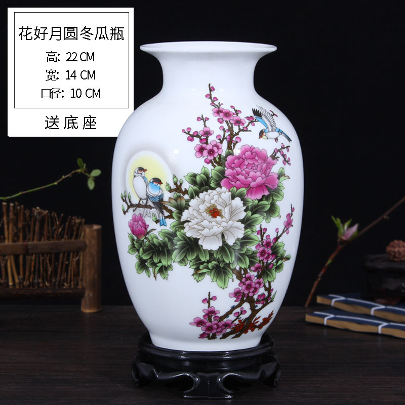 Jingdezhen 꽃병 세라믹 장식품 거실 꽃 장식품 현대 중국 스타일 장식 도자기 병 왁스 멜론 병