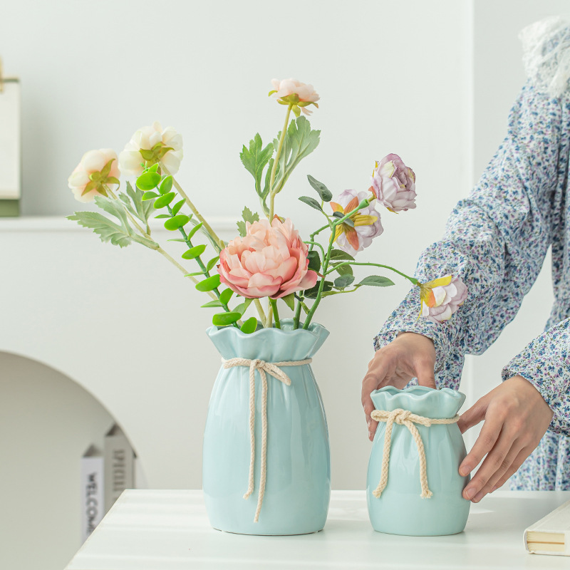 고온 현대 간단한 세라믹 가방 꽃병 꽃 말린 꽃 물 수 거실 식탁 침실 장식품 핑크
