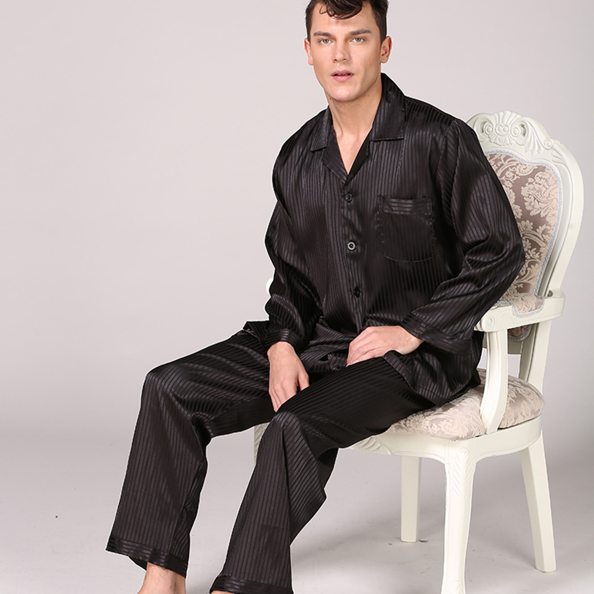 사용자 정의 남자의 잠옷 세트 사용자 정의 여름 커플 실크 얇은 잠옷 세트 89008스토어 가기