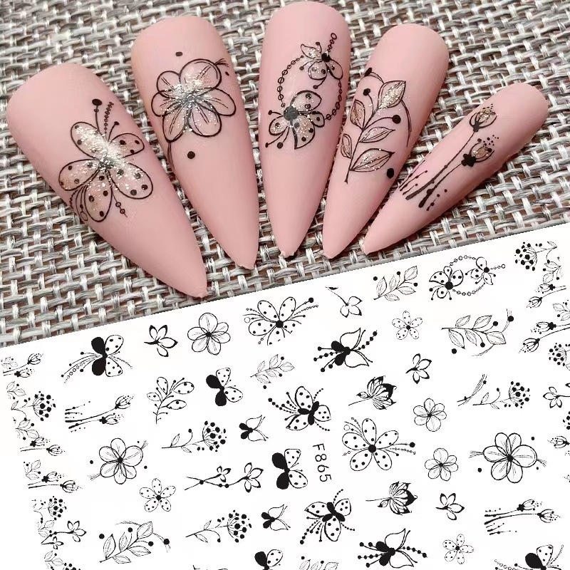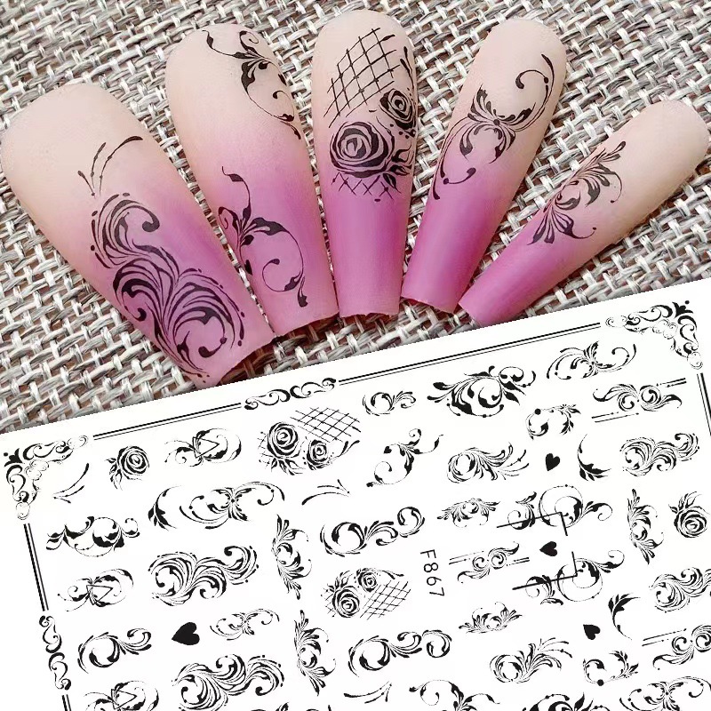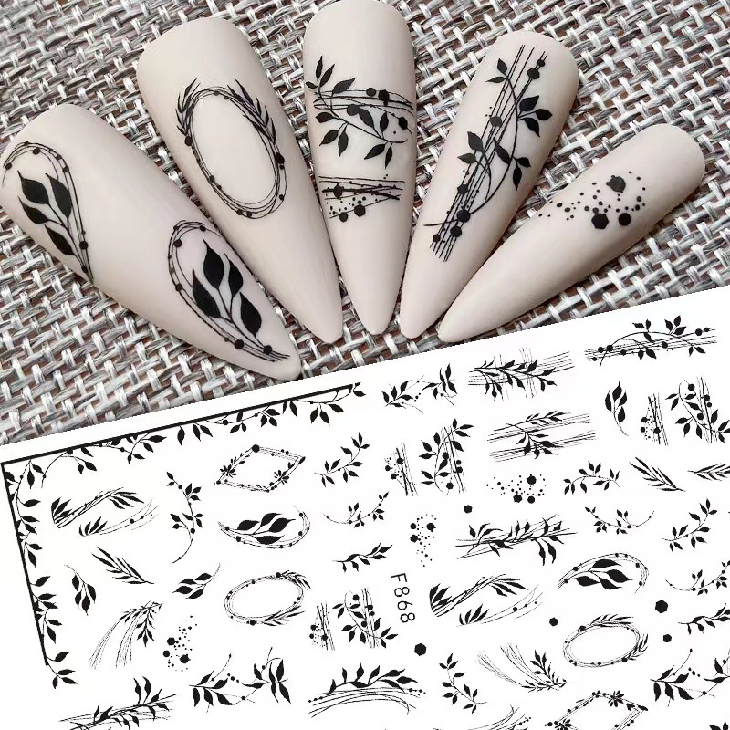 NAIL2022 크로스 보더 새로운 흑백 토템 간단한 꽃 시리즈 F864-873 네일 아트 접착제 갑옷 스티커