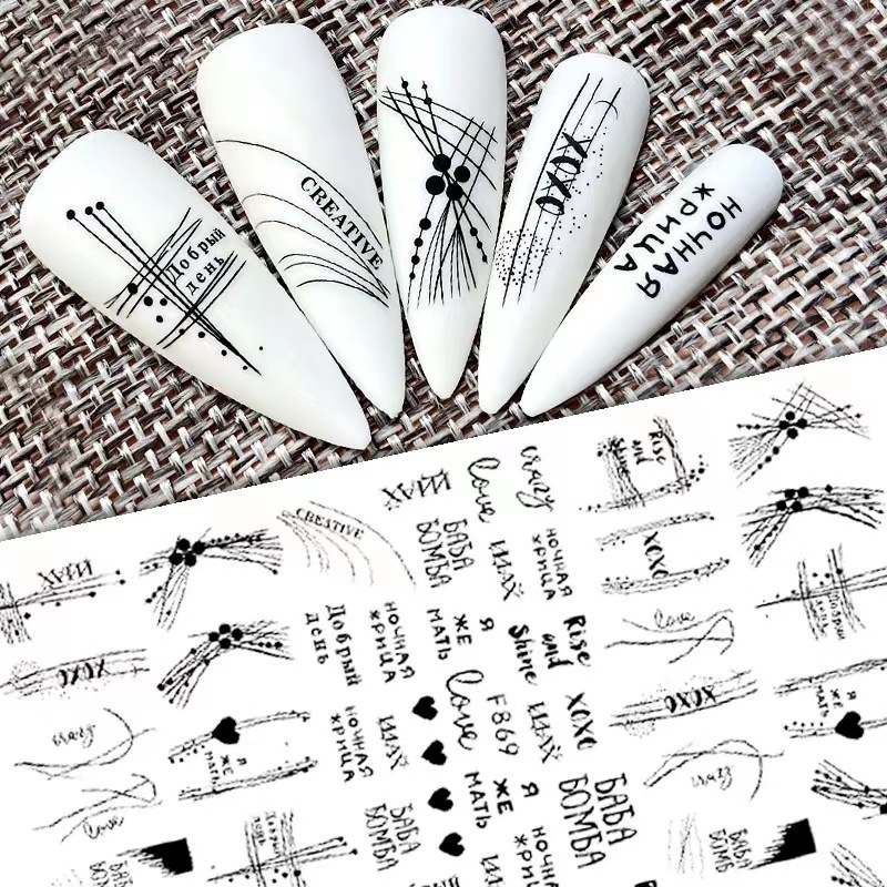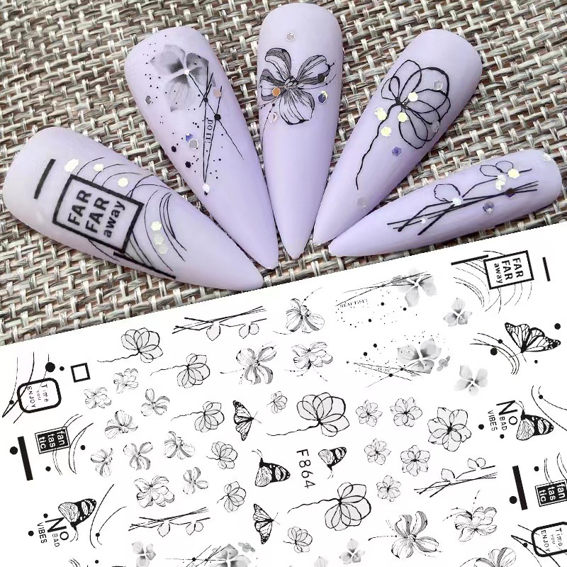 NAIL2022 크로스 보더 새로운 흑백 토템 간단한 꽃 시리즈 F864-873 네일 아트 접착제 갑옷 스티커스토어 가기