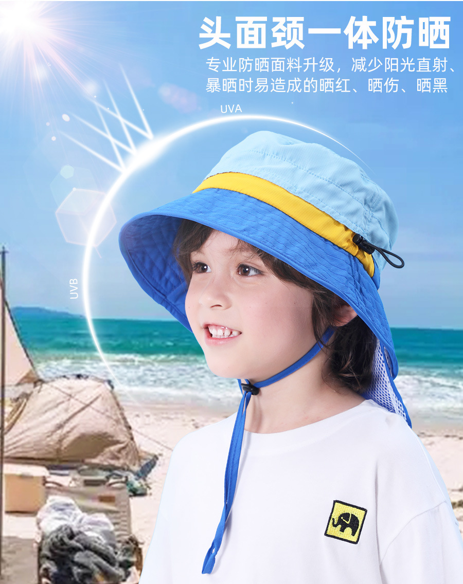 국경을 넘는 새로운 목 보호 어린이 태양 보호 분지 모자 소녀와 소년 양산 어부 모자 안티 UV 아기 모자 여름