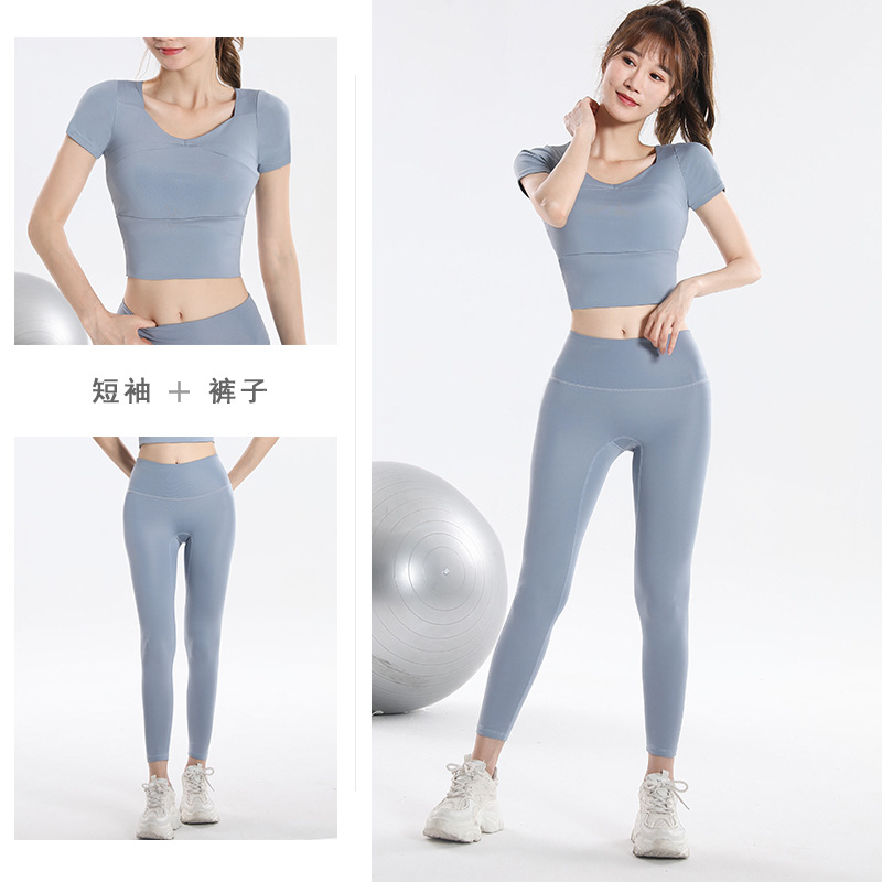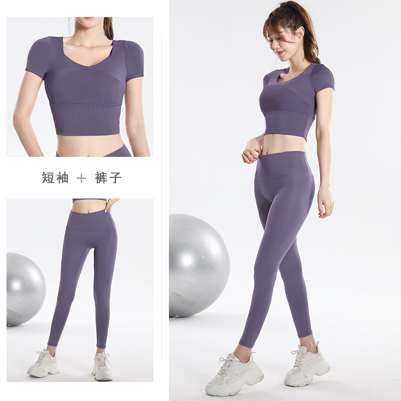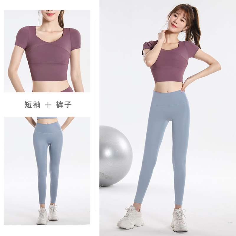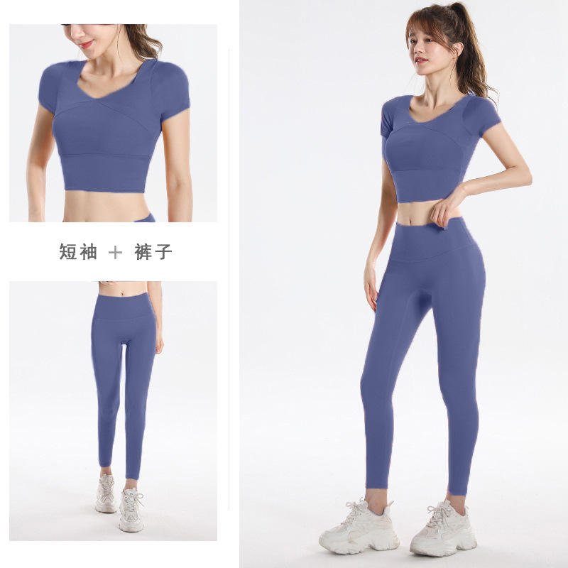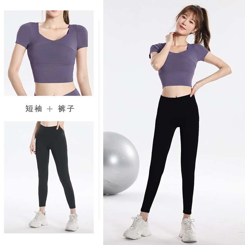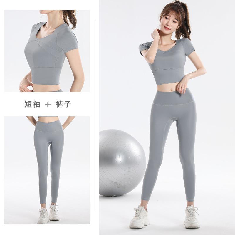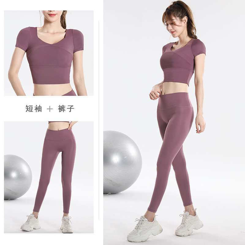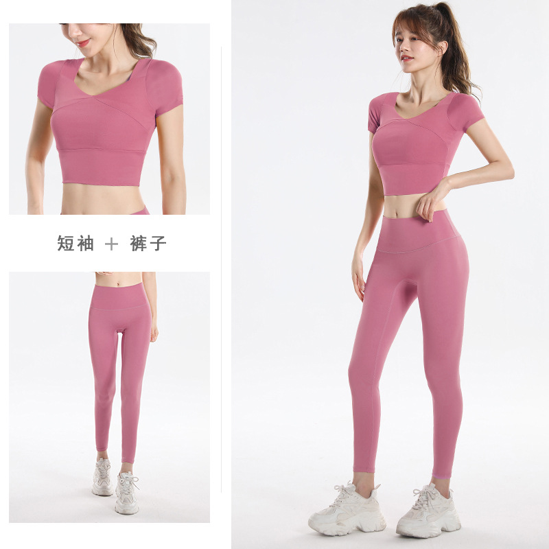 여성용 스포츠 탑, 가슴 패드가 있는 속건성 반팔 플러스 사이즈 요가복 2024 새로운 아침 달리기 피트니스 슈트 여름과 가을스토어 가기