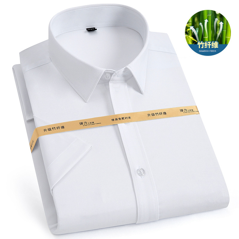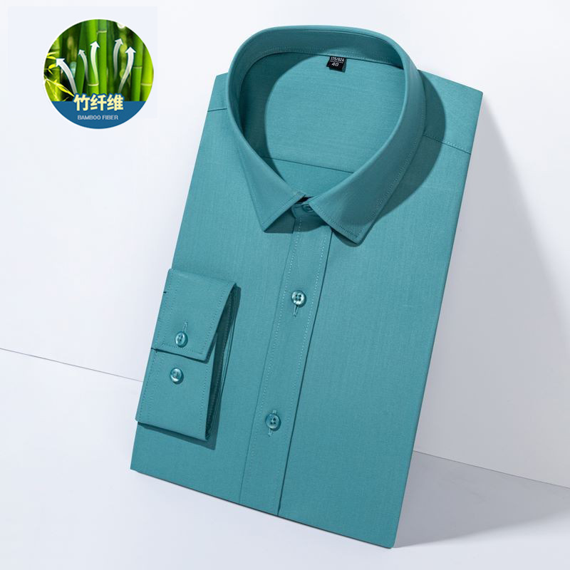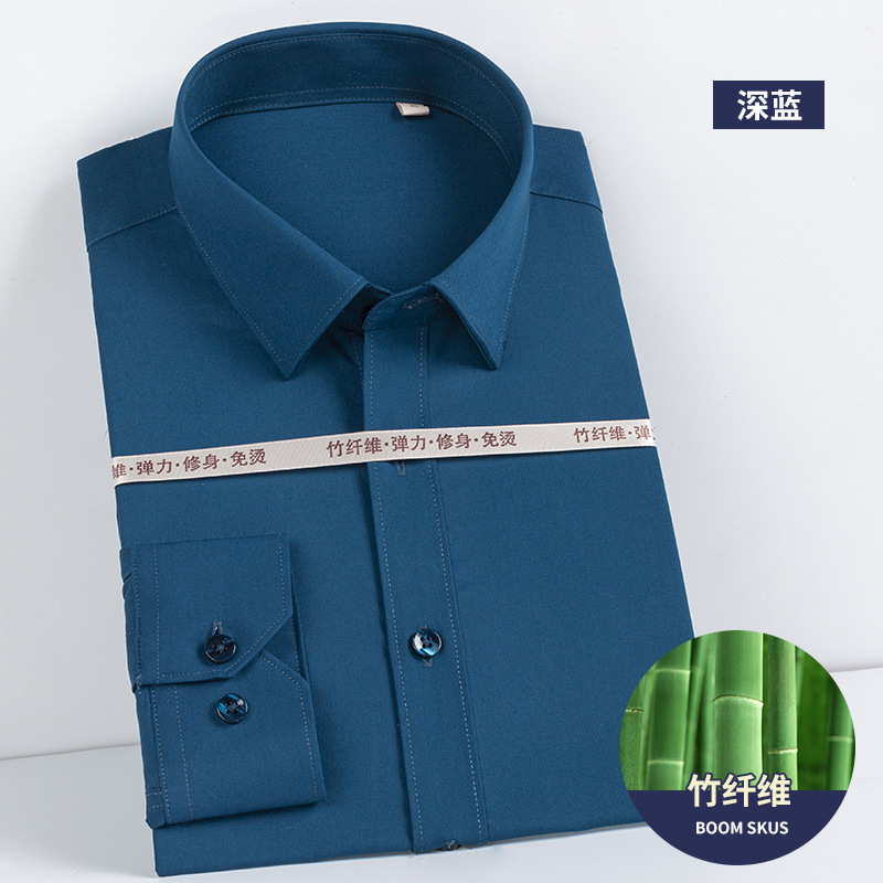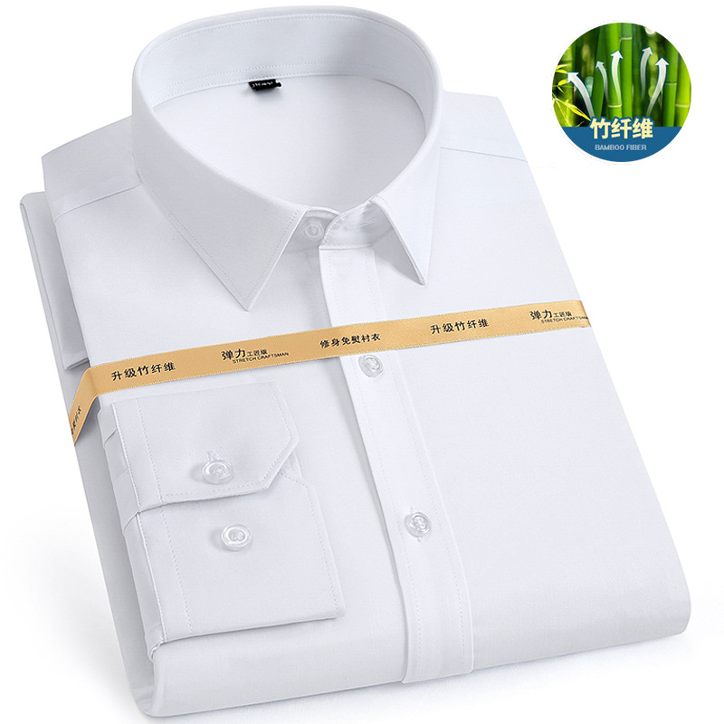 대나무 섬유 셔츠 남자의 긴 소매 화이트 비즈니스 캐주얼 비 다림질 원피스 슬림 핏 작업 남자의 전문 스트레치 셔츠스토어 가기