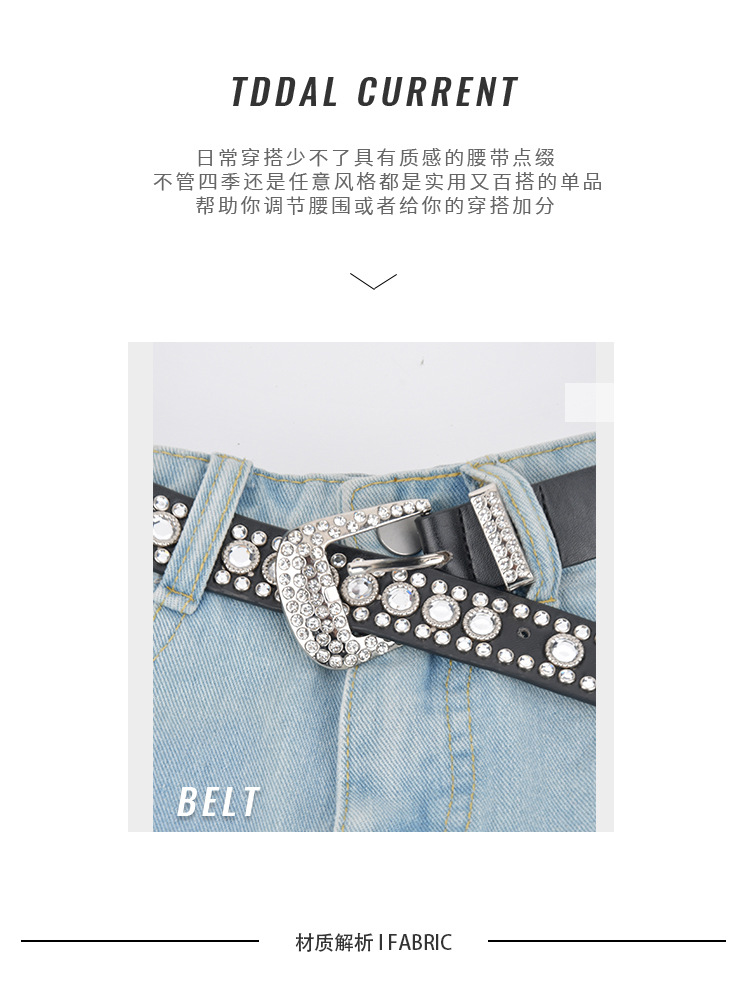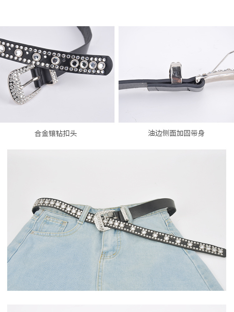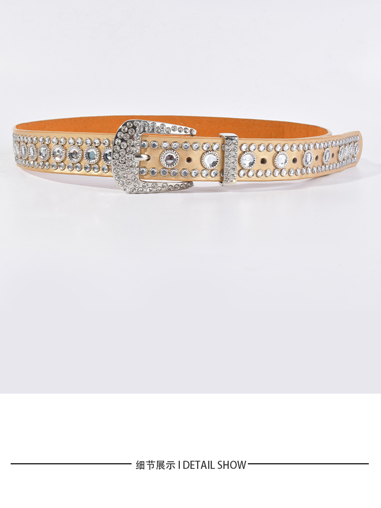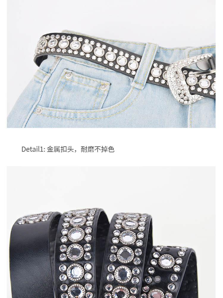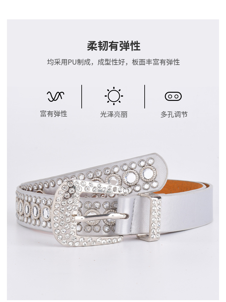화이트 여성용 큐빅 장식 PU 가죽 벨트, 청바지 장식용 와이드 벨트, 개성 있는 트렌디한 스타일스토어 가기
