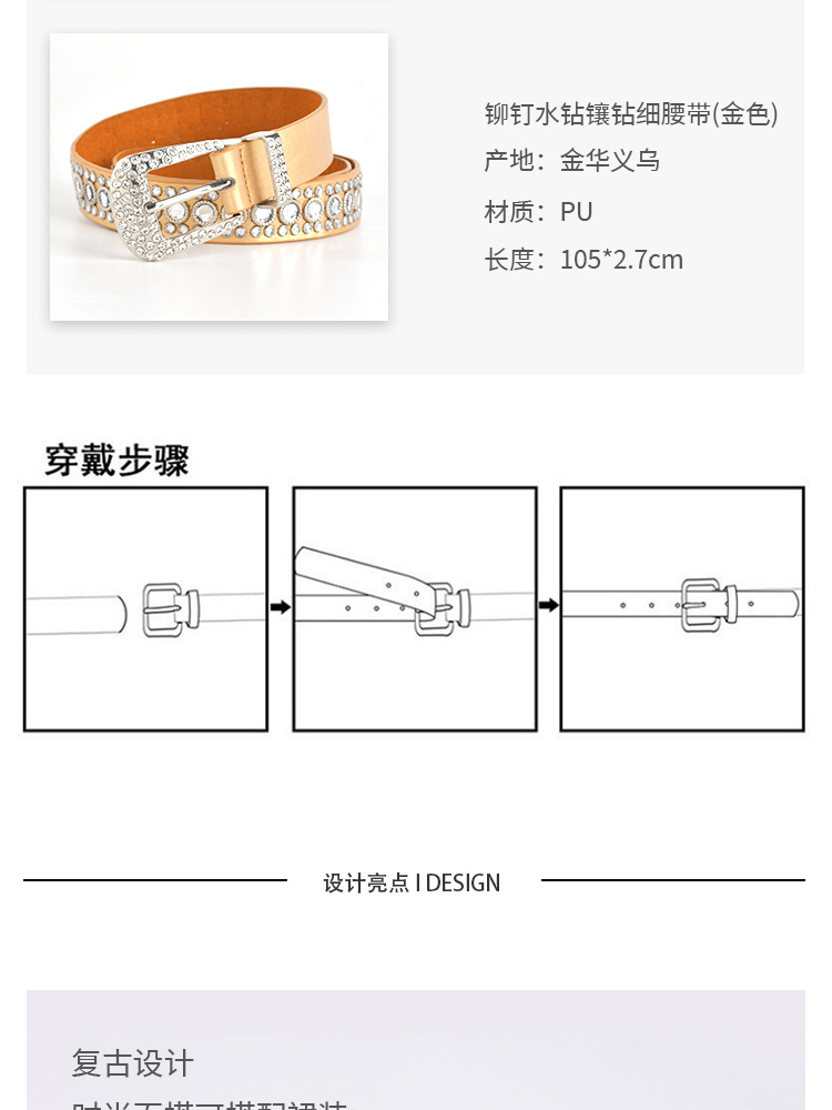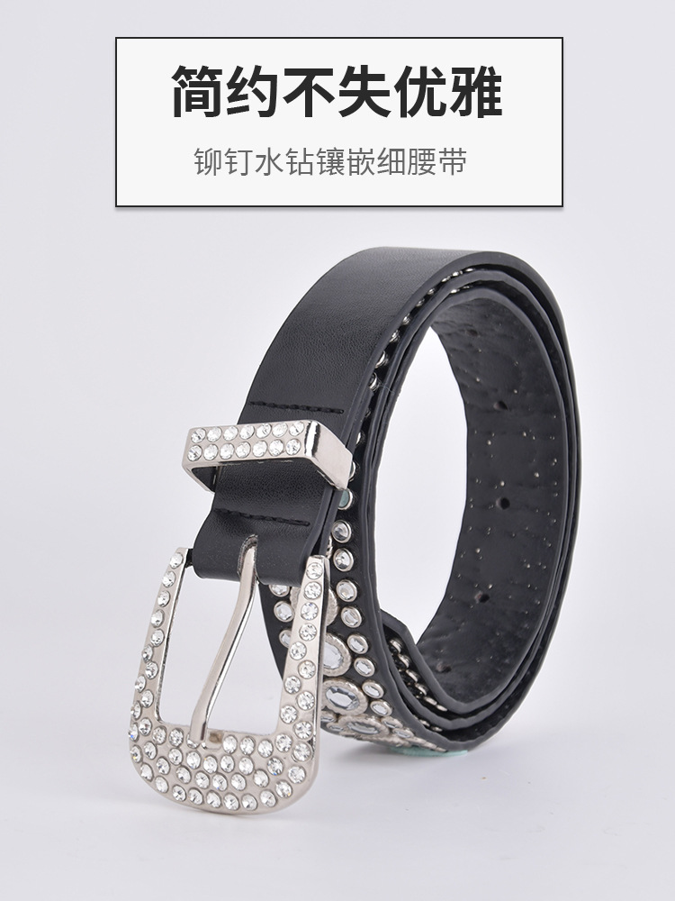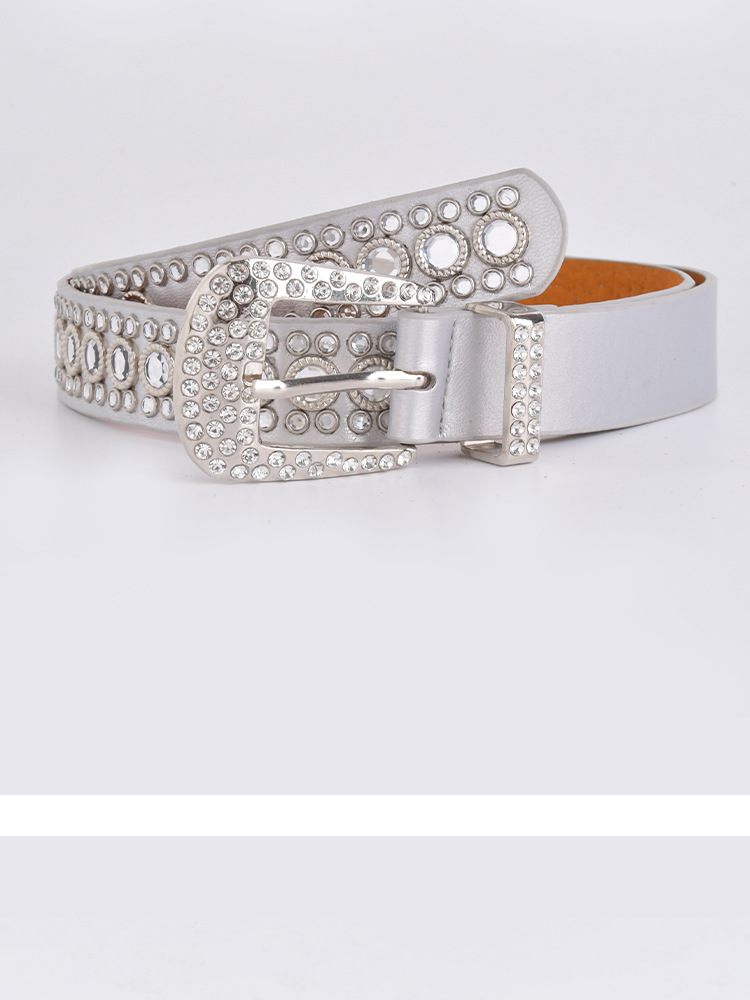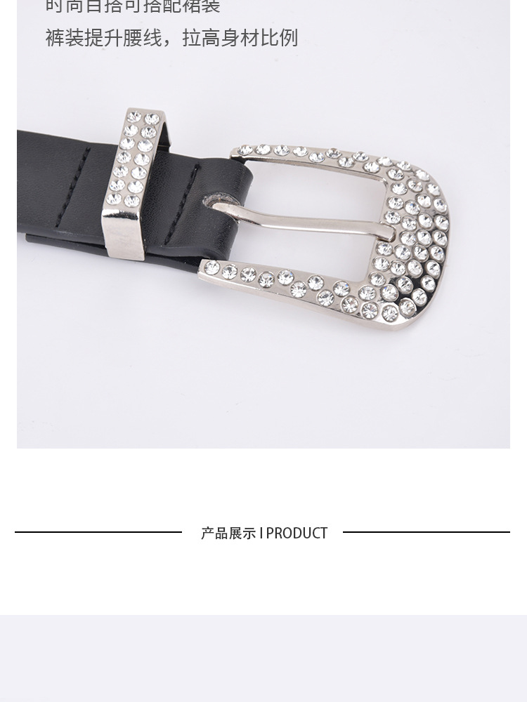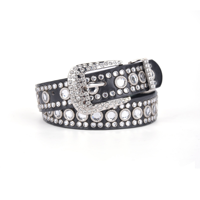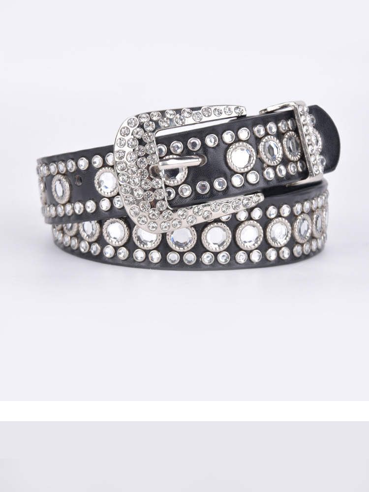 화이트 여성용 큐빅 장식 PU 가죽 벨트, 청바지 장식용 와이드 벨트, 개성 있는 트렌디한 스타일스토어 가기