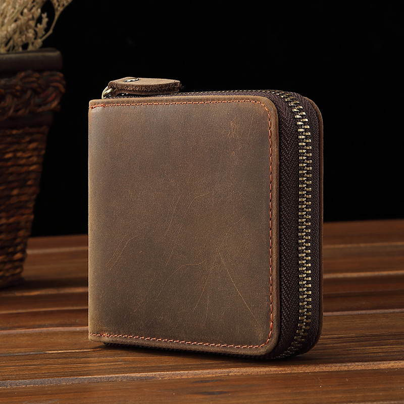 남성용 지갑 레트로 스타일 천연 소가죽 크레이지 홀스킨 다중 카드 슬롯 대형 지폐 수납 가로형 다중 카드 수납스토어 가기