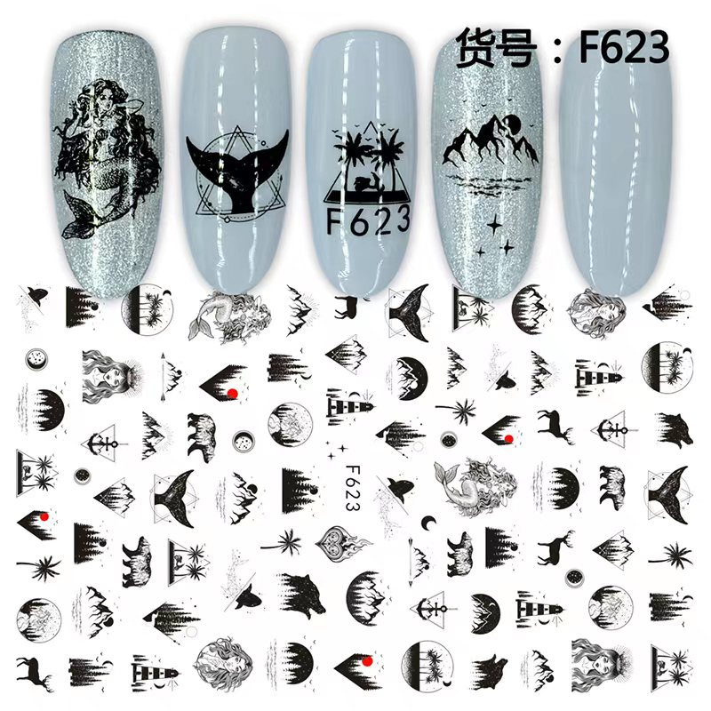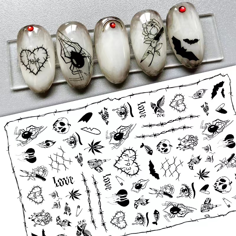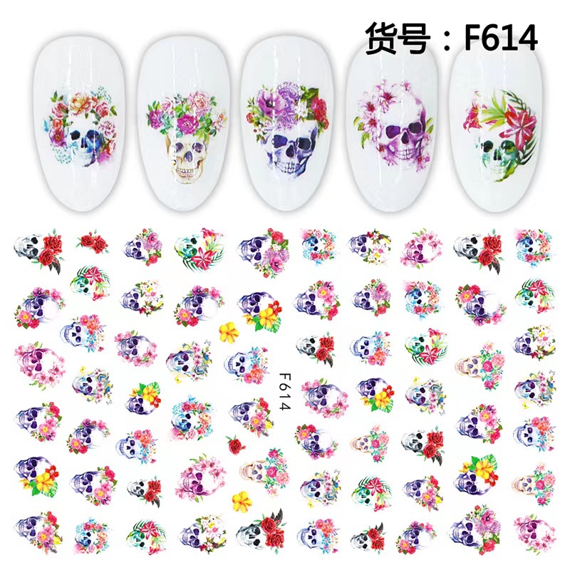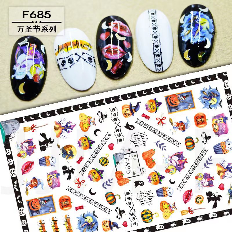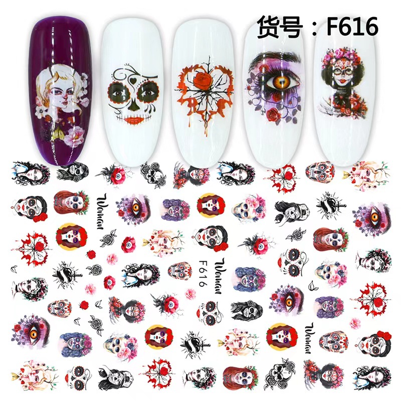 2022 크로스 보더 뉴 할로윈 시리즈 네일 아트 데칼 광대 스마일 해골 호박 랜턴 사용하기 쉬운