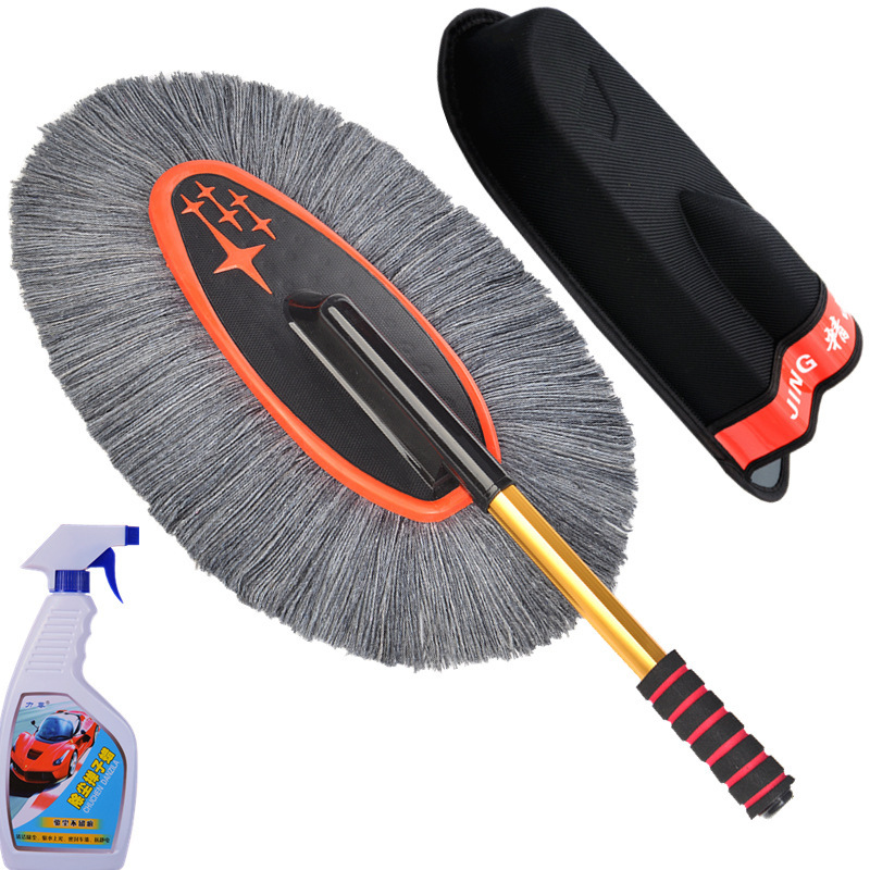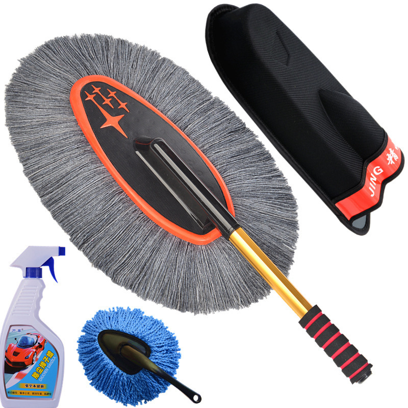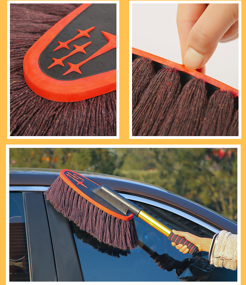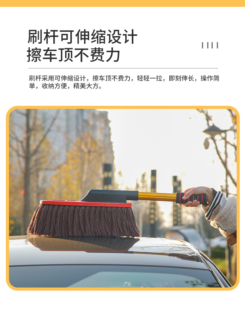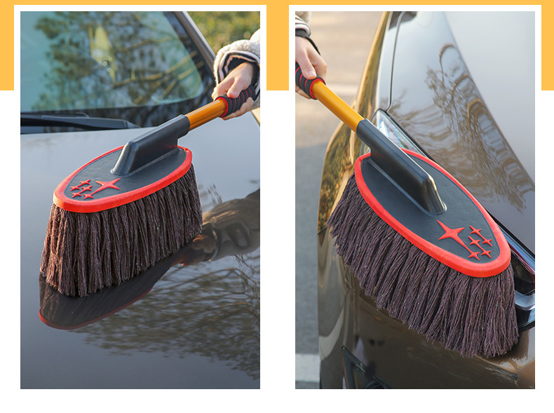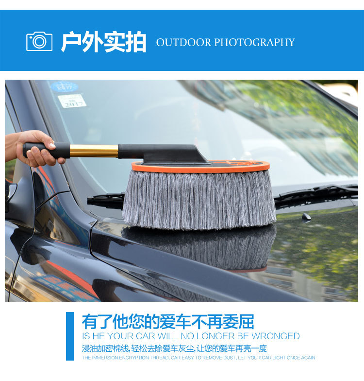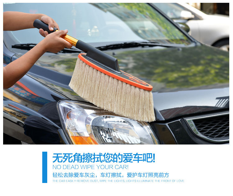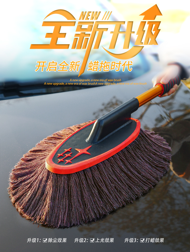 蜡刷的基础作用:蜡刷只是扫除干净的漆面上干燥的浮灰的,这里包含三个要点:漆面本身是干净的、干燥的、灰是浮灰,其他情况不是蜡刷能解决的。干净的漆面就是除了浮灰之外,没有其他的黏附物或者水渍之类的;干燥的,您可以尝试下用嘴吹下灰,如果灰不能被吹掉,就说明不是干燥的;浮灰的判断,您可以用手指轻轻抹一下,如果能抹干净,说明就是浮灰,抹不掉的东西就显然不是浮灰了。比如说车长期没有洗过,有些灰尘已经附着在漆面了,就不是浮灰,蜡刷也扫不掉;不是灰尘的一些顽渍,蜡刷也扫不掉;漆面上有水或者有露气(潮湿)也是不能扫的。春秋季的早晨车上容易有露,~提醒用户:有露水的时候请勿使用,免得纱线上粘灰,可以选择在晚上收车后扫灰,这样早晨车上就不会有太多的灰。另外,亲们要理解,蜡刷不能替代洗车,只能减少您洗车的频率,下过雨后必须洗车(泥点和水渍不是蜡刷能扫掉的),平时用蜡刷扫灰,即使一直不下雨,那也大约10天左右需要洗一次车,毕竟有些东西是会粘附在漆面的,特别是车停放到那里长期没有用,落在上面的灰尘会沉积并的附着在漆面上,在漆面形成很多小点,这是扫不掉的,就需要洗车。