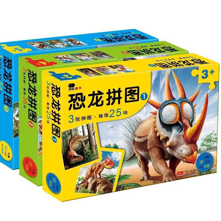 작은 붉은 꽃 공룡 퍼즐 세 상자 모두 345 + 다른 시대의 어린이 교육 계몽 현실적이고 절묘한 이미지스토어 가기