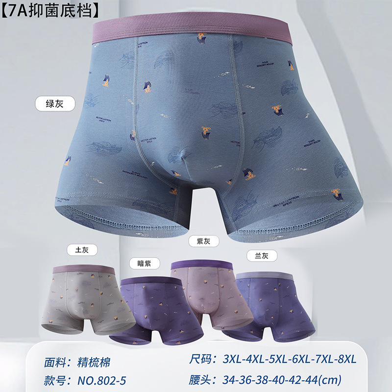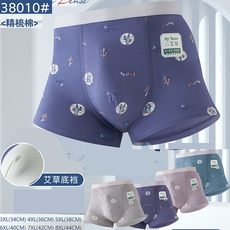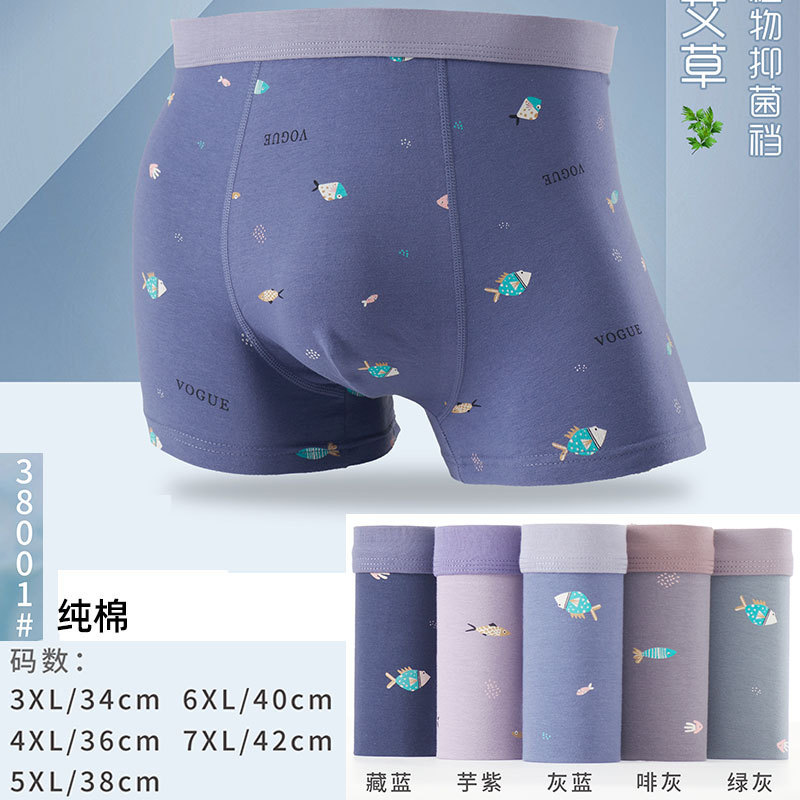 남성용 순수 면 인쇄 솔리드 컬러 복서 팬티 시리즈 미드 허리 복서 팬티 남성 Yueba 직접 공급스토어 가기