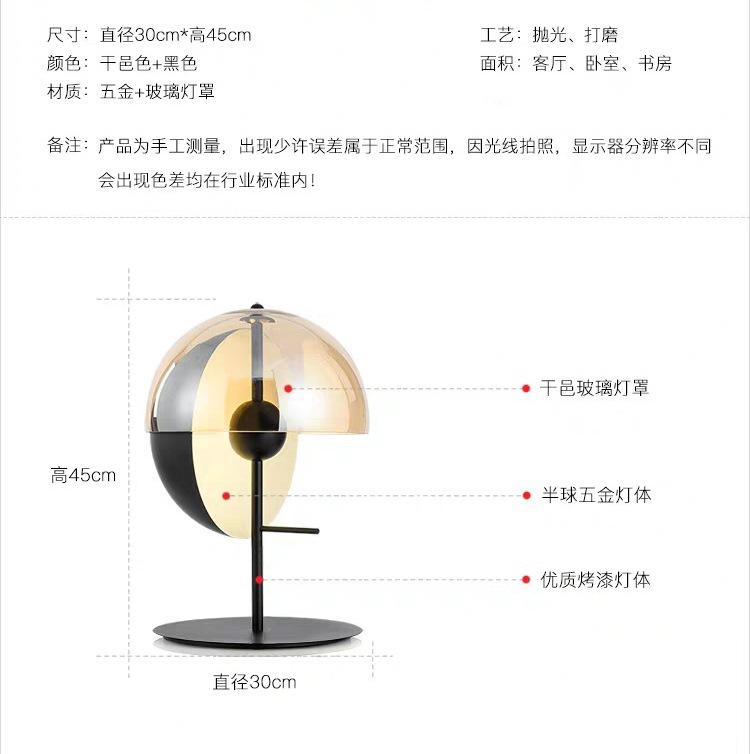 북유럽 예술 테이블 램프 창조적 인 디자이너 모델 룸 개인화 된 반구 원형 거실 침실 장식 침대 옆 램프
