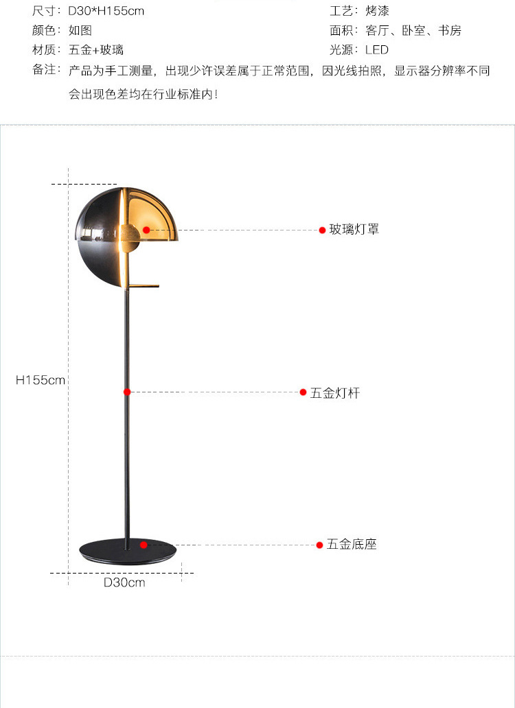 落地灯尺寸:300 ×300×1550mm