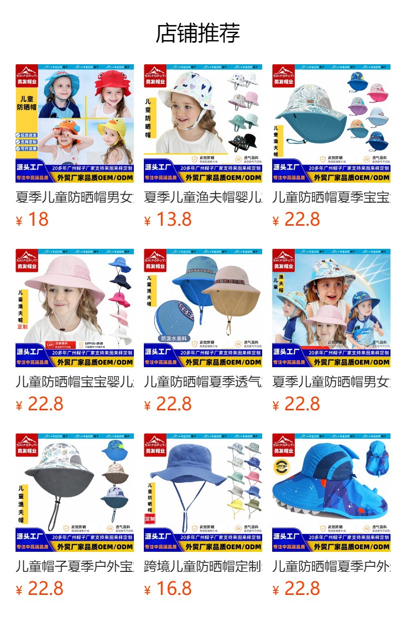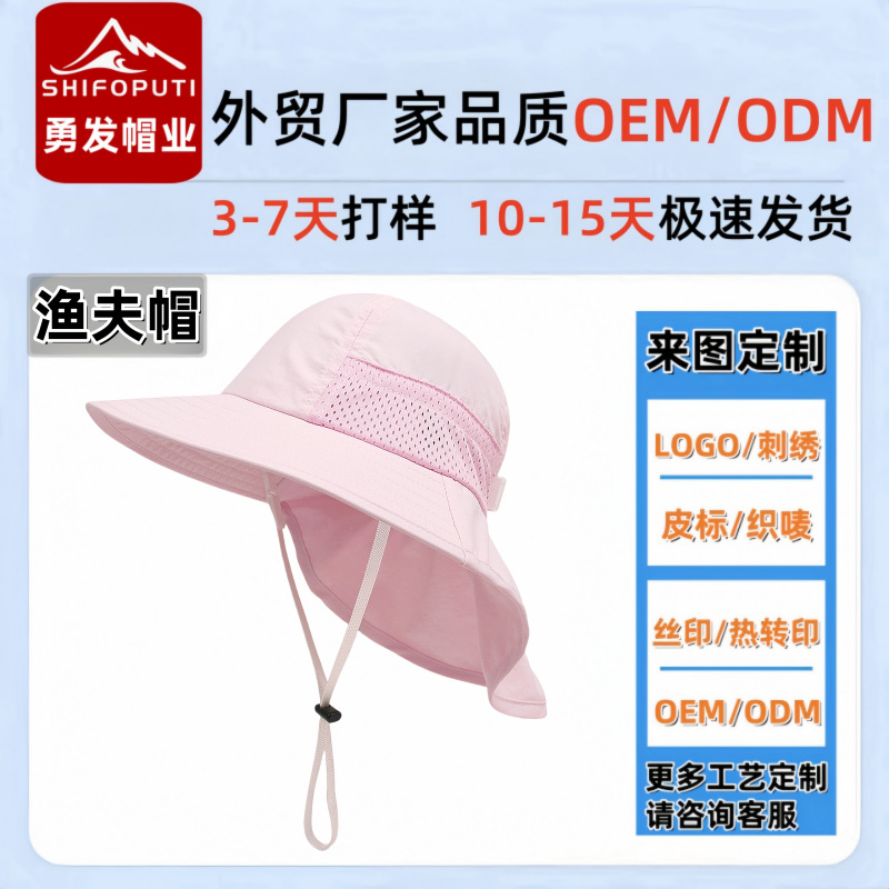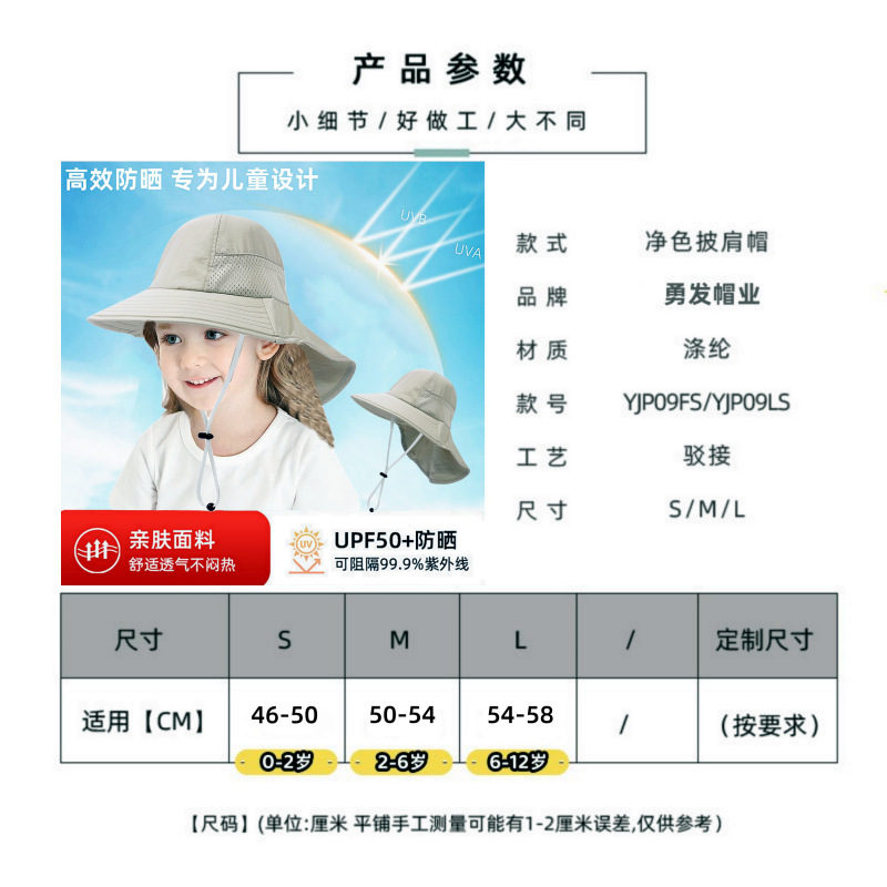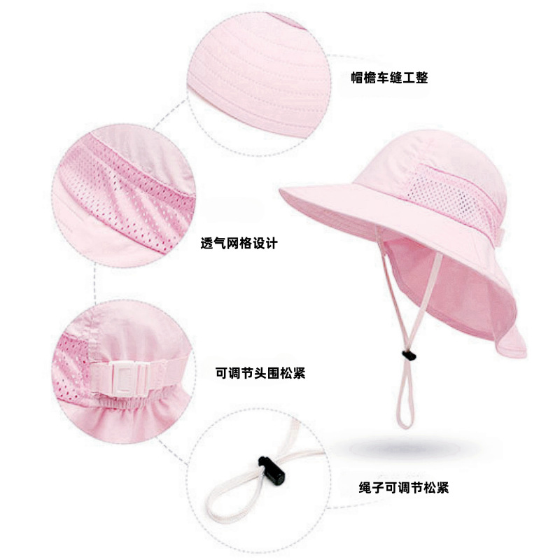 夏季儿童防晒帽宝宝婴儿轻薄透气遮阳帽男童女童大帽檐披肩渔夫帽