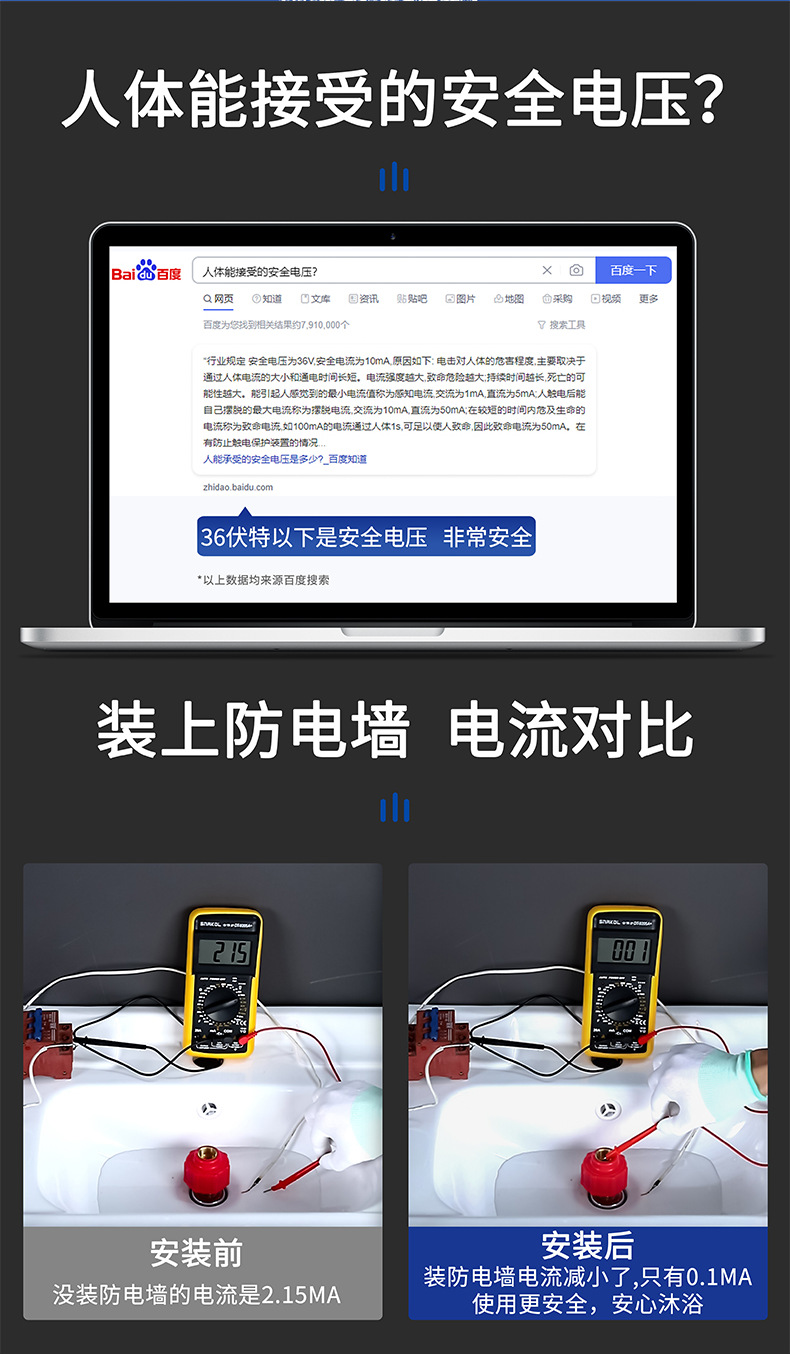 전기 온수기 전기 벽 범용 조인트 누수 방지 방화벽 특수 단열 벽 감전 액세서리 브랜드스토어 가기