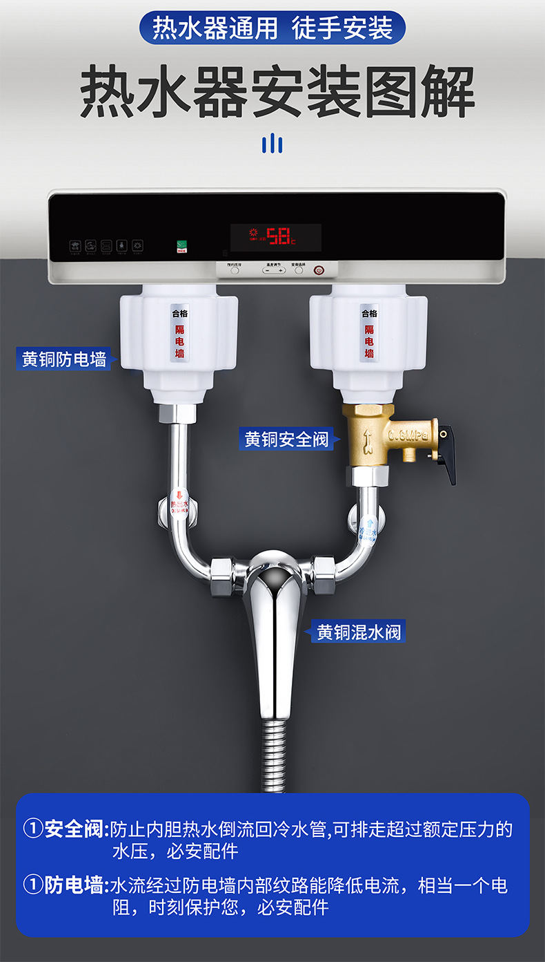 전기 온수기 전기 벽 범용 조인트 누수 방지 방화벽 특수 단열 벽 감전 액세서리 브랜드
