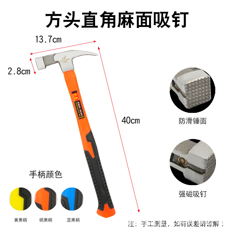 锤顶坚固耐用,锤角起订有力,采用防滑和吸钉功能,大大减少了工友们的工作时间提高了工作效率。