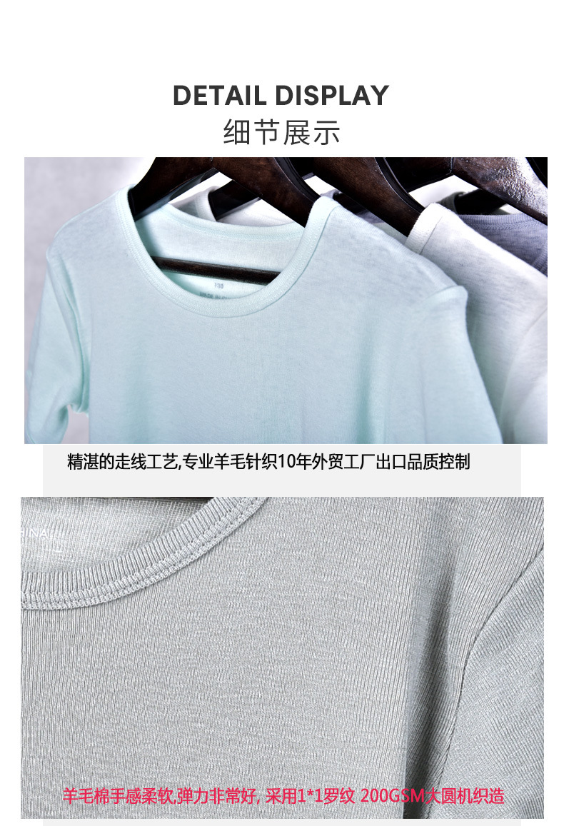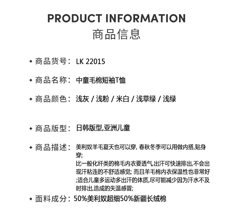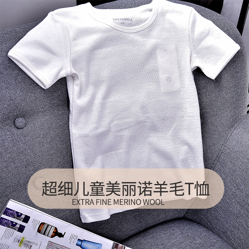 루카스웰 남녀 중소 아동 메리노 울 면 반팔 티셔츠 라운드 넥 셔츠 속옷 베이스 셔츠