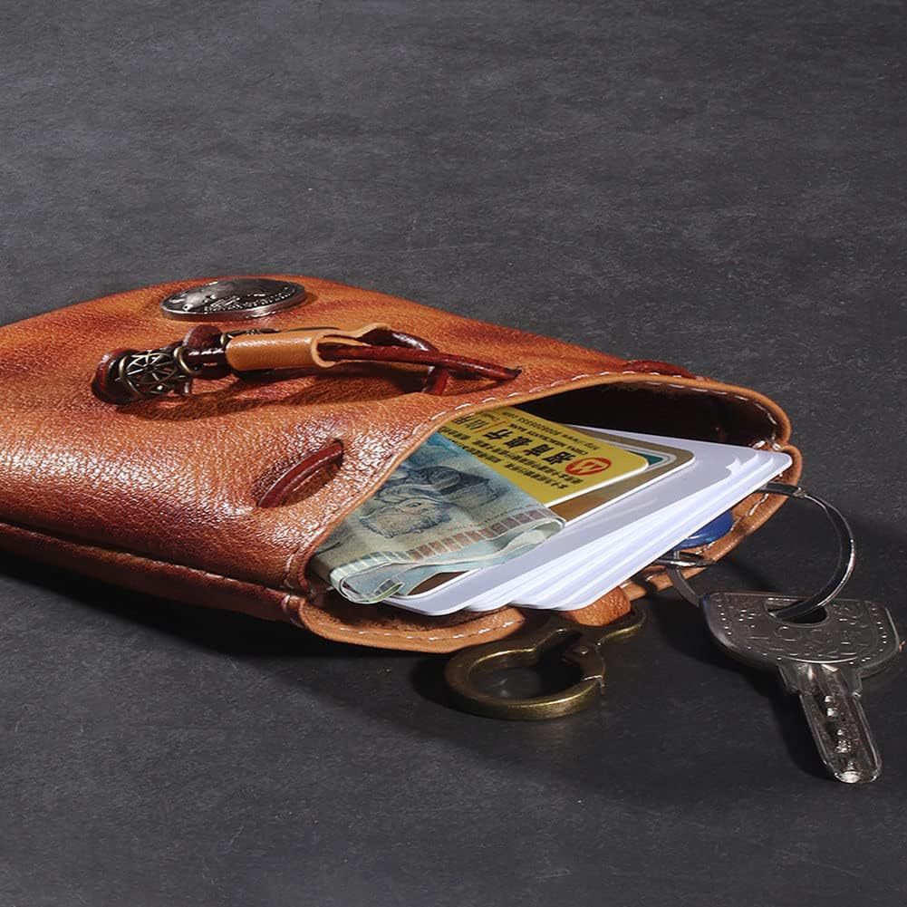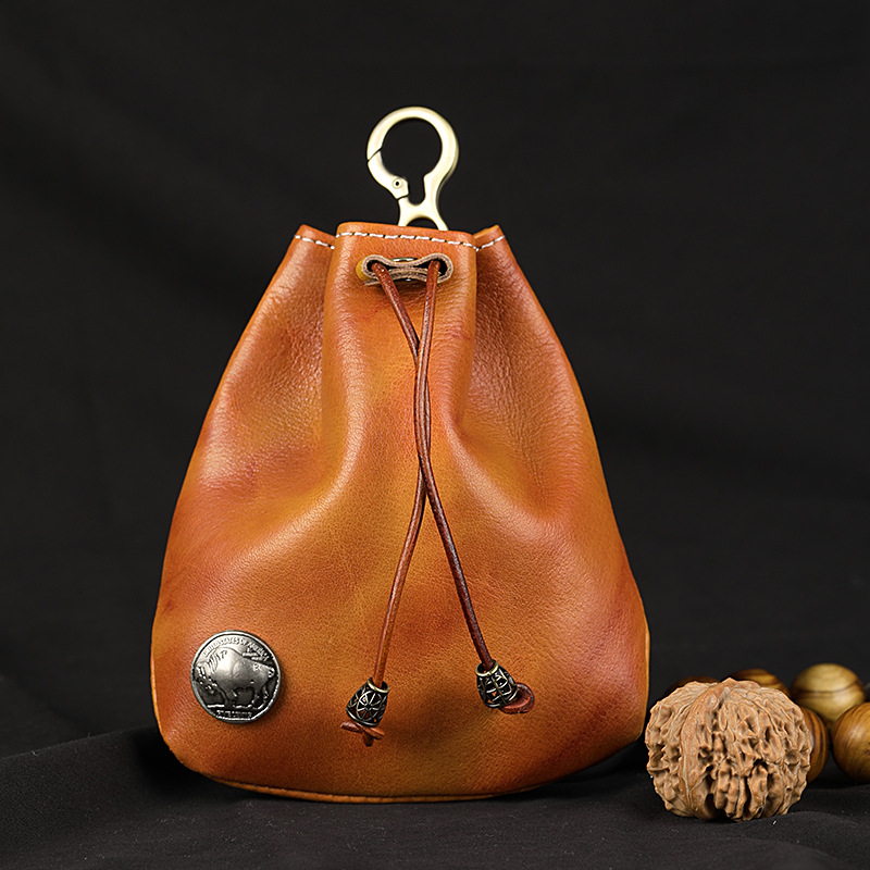 Mini Vintage Purse Drawstring Coin Purse Card Bag Key Bag Leather Drawstring Change Purse Leather Personality Coin Purse For Men and Women