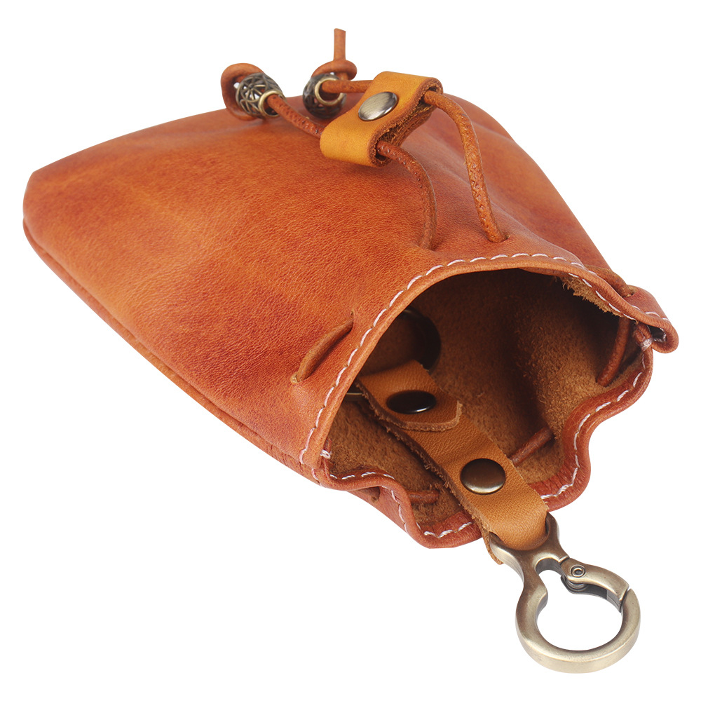 1등급 소가죽 레트로 동전지갑 이어폰 키 가방 행운의 가방 보석 가방 허리 가방 조임끈 수납 가방