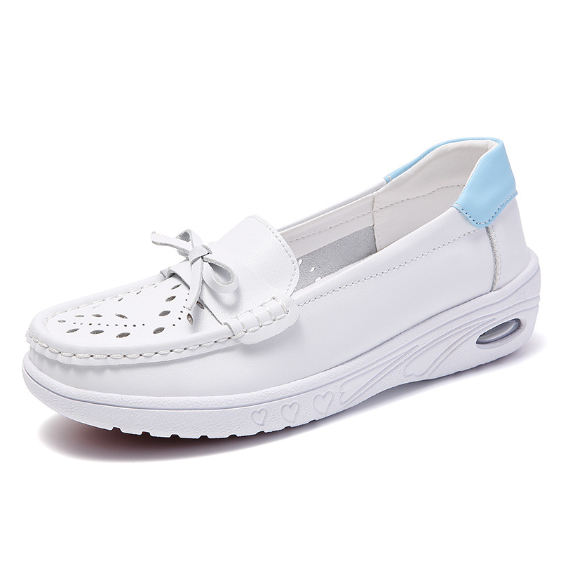 간호사 신발 여성용 소가죽 가을과 여름 부드러운 밑창 미끄럼 방지 의료 특수 에어 쿠션 두꺼운 밑창 높이 작업 신발 흰색 조커 신발