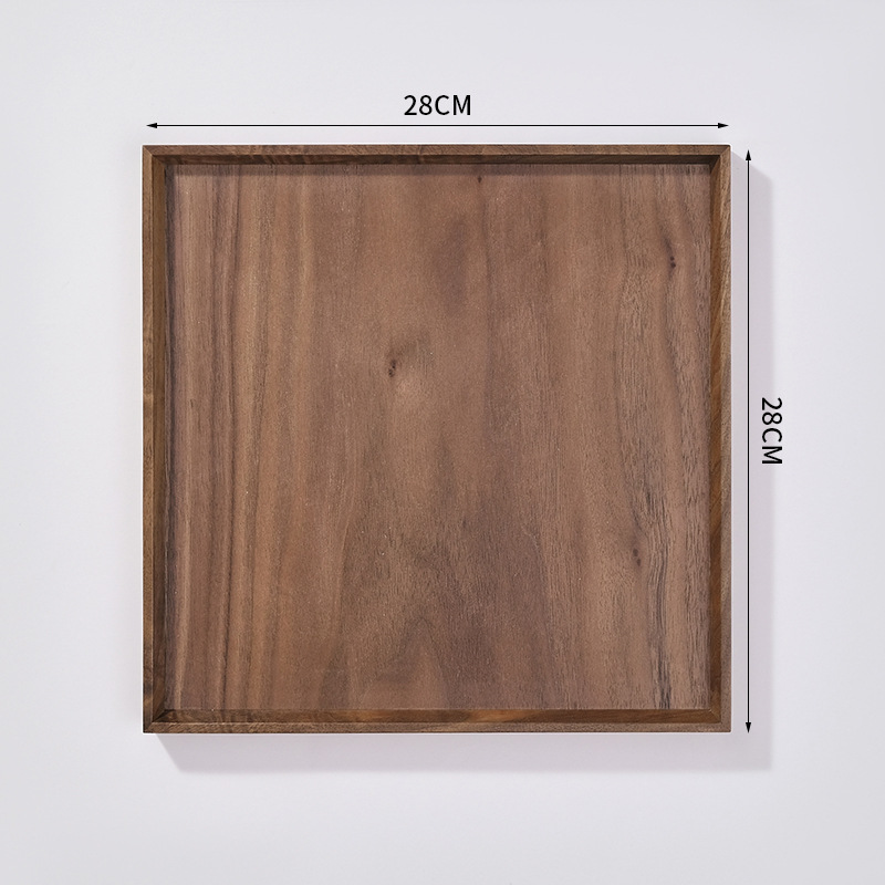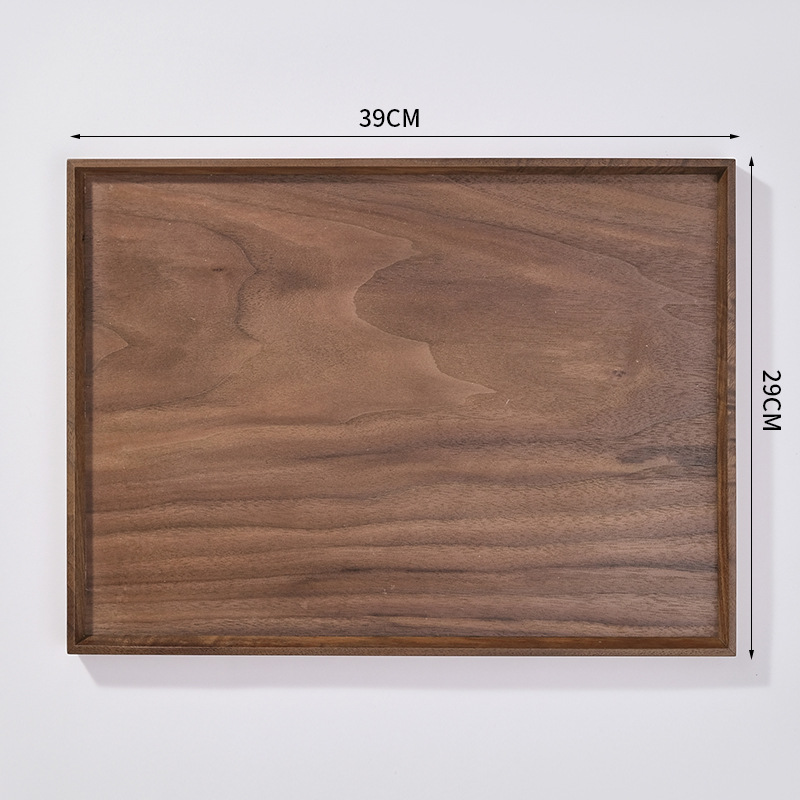 블랙 호두 단단한 나무 트레이 일본식 식기 가정용 과일 접시 나무 트레이 티 트레이 위 접시 접시