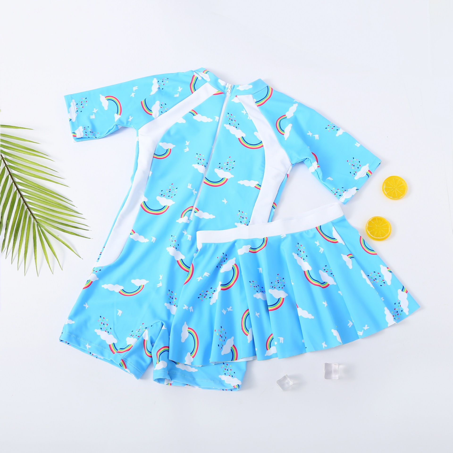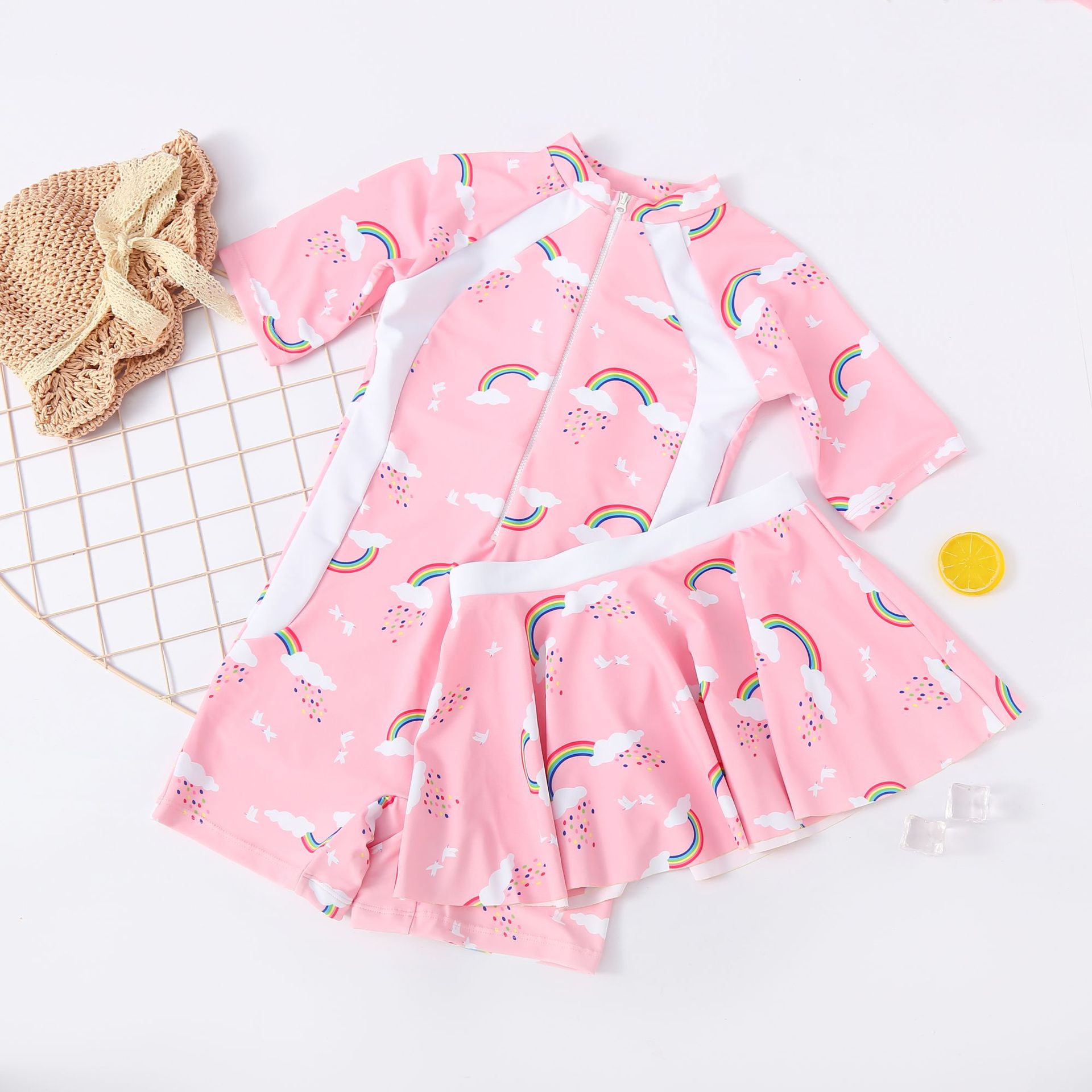 새 어린이 수영복 소녀 원피스 스커트 수영복 소녀 중 · 대형 어린이 한국 귀여운 학생 온천 수영복