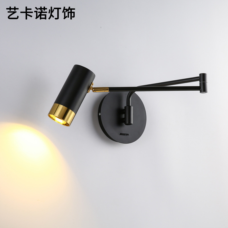 최소한의 침대 옆 벽 램프 조명 럭셔리 간단한 현대 연구 독서 주도 창조적 인 텔레스코픽 로커 침실 벽 램프