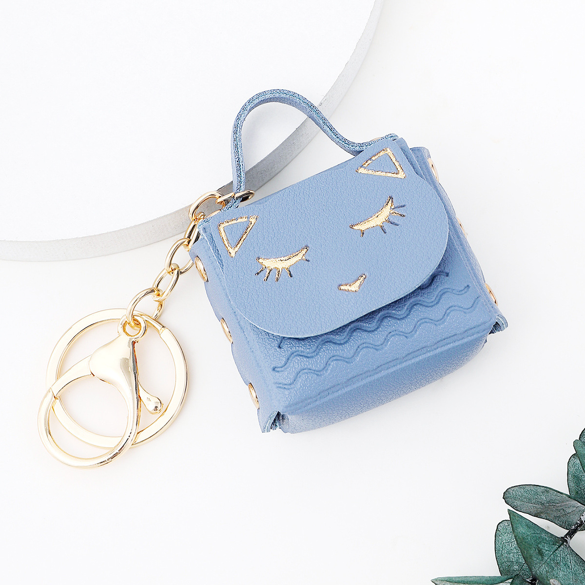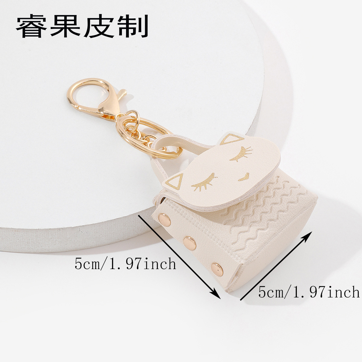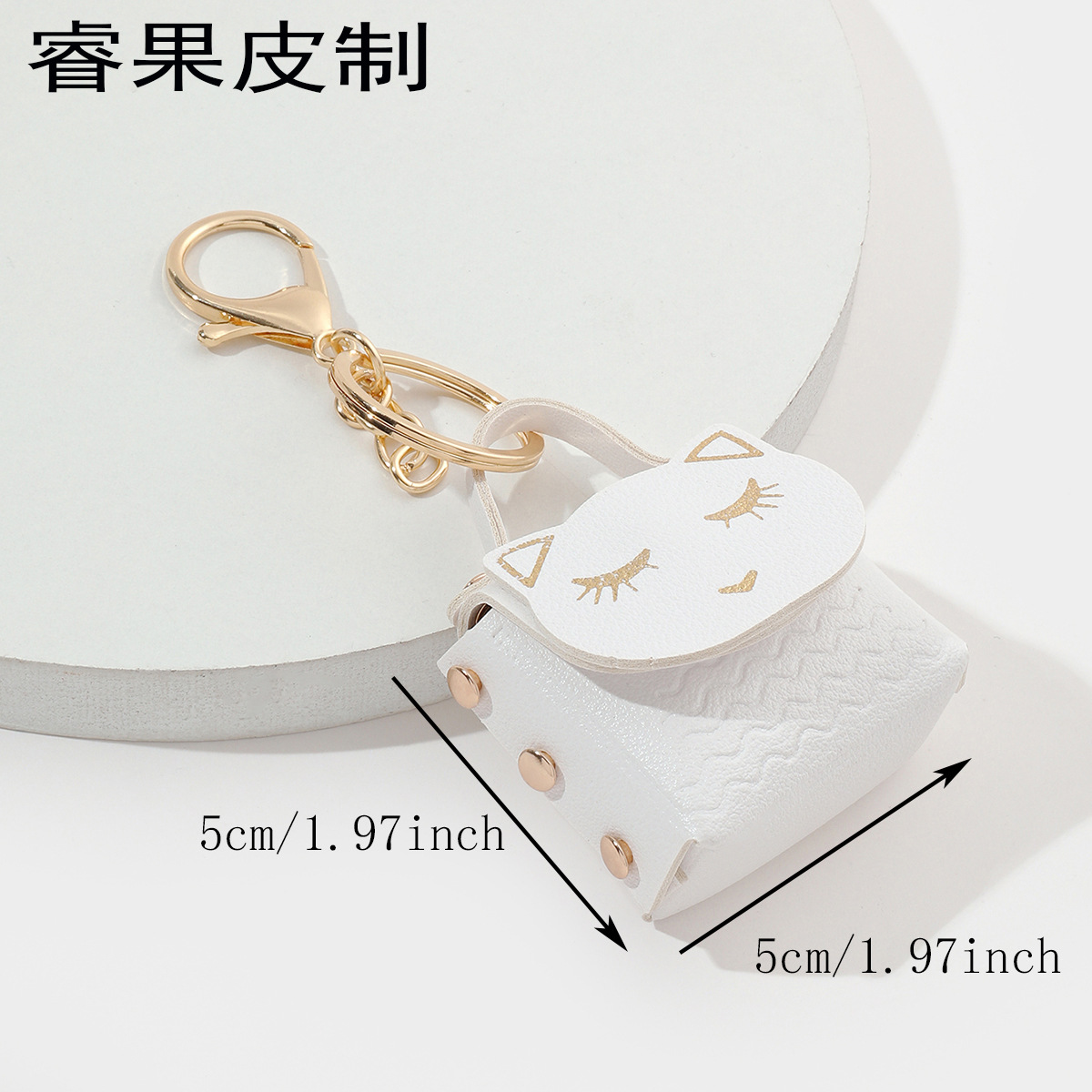 Ruiguo 가죽 고양이 머리 동전 지갑 열쇠 고리 패션 자동차 가방 커플 열쇠 고리 작은 펜던트 도매스토어 가기