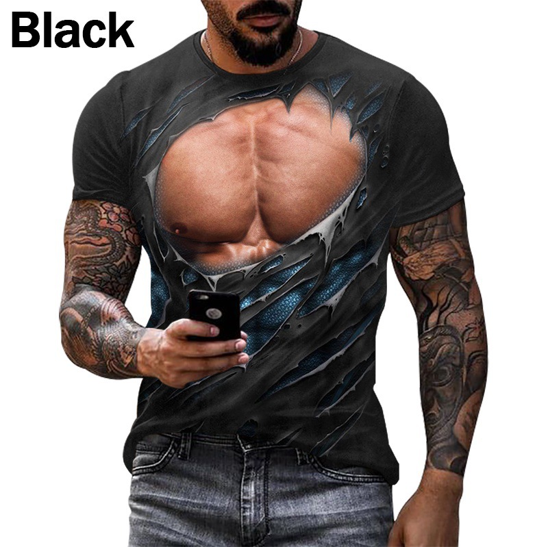 소스 제조업체 2021 여름 대외 무역 여름 새로운 근육 남성 3D 디지털 인쇄 티셔츠 짧은 소매 1 세대스토어 가기