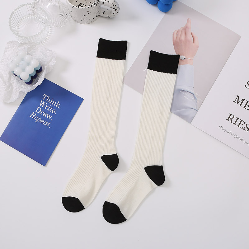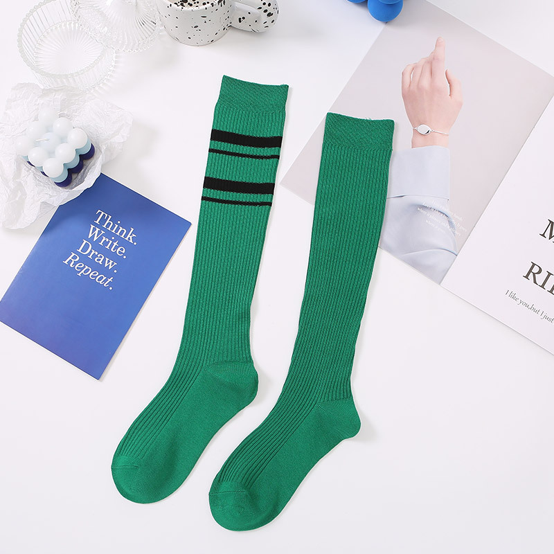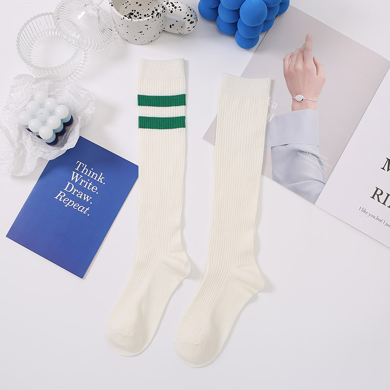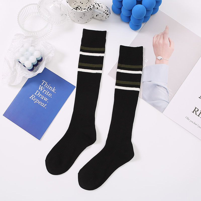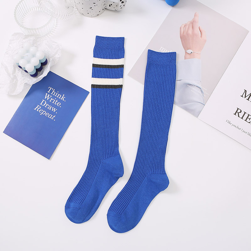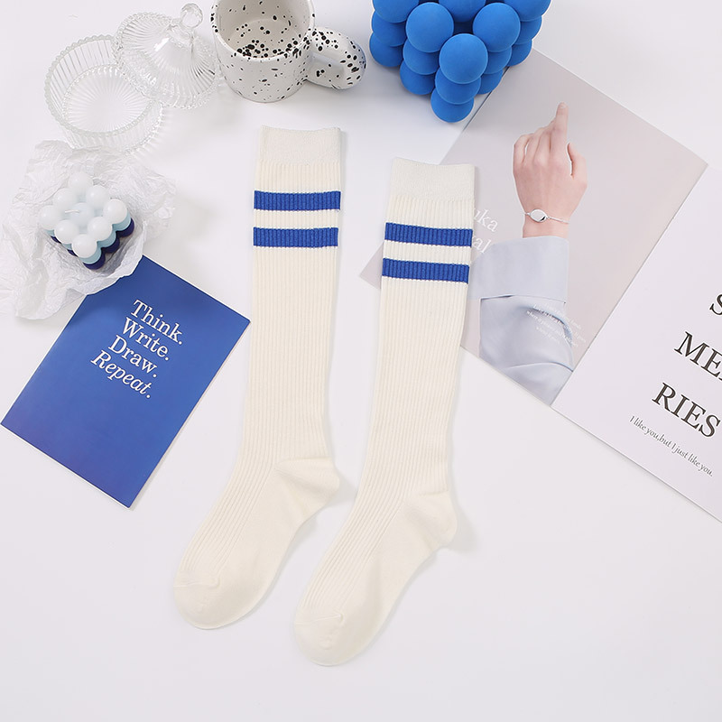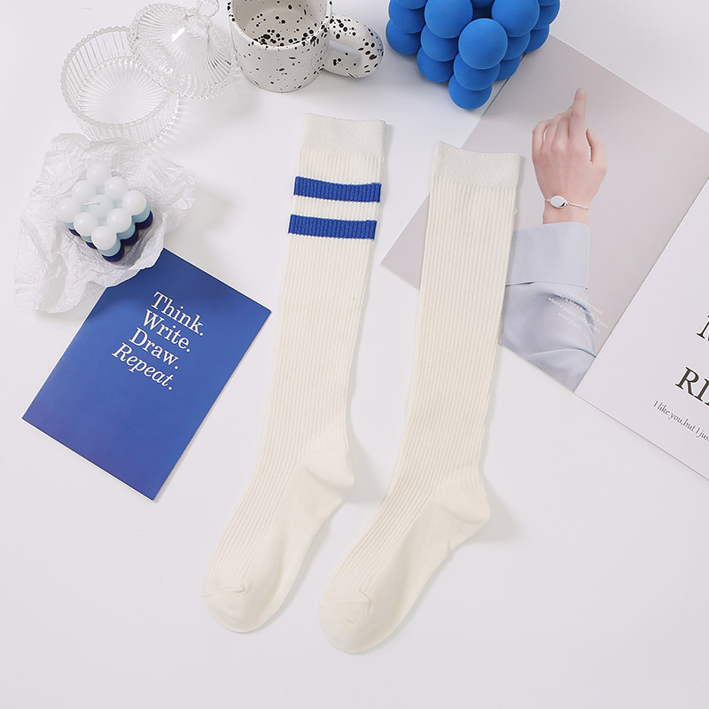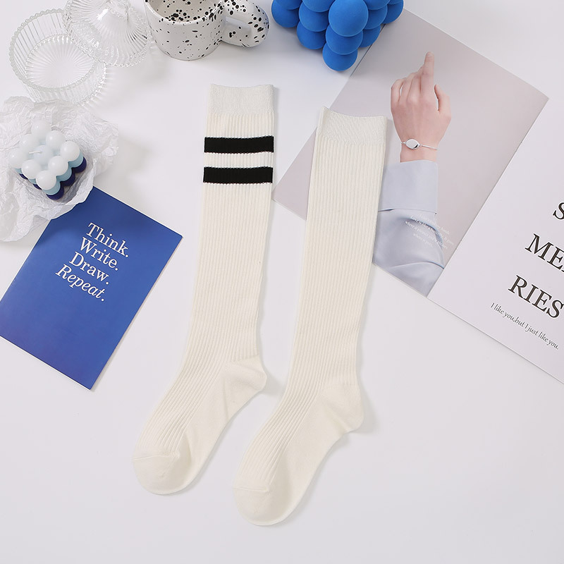 송아지 여성 스타킹 면화 2 바 학생 양말 높은 튜브 면화 양말 제조 업체 도매 트렌드 in