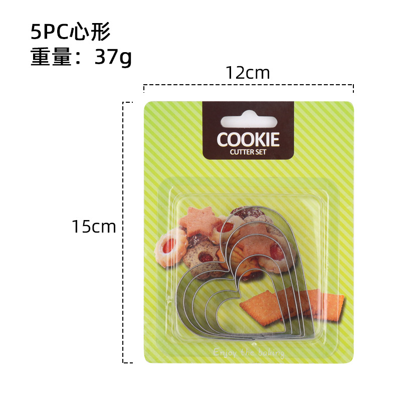 쿠키 컷 5 조각 세트 하트 스타 꽃 원형 그림 스테인레스 스틸 비스킷 절단 금형 와플 쿠키 케이크 비스킷 금형