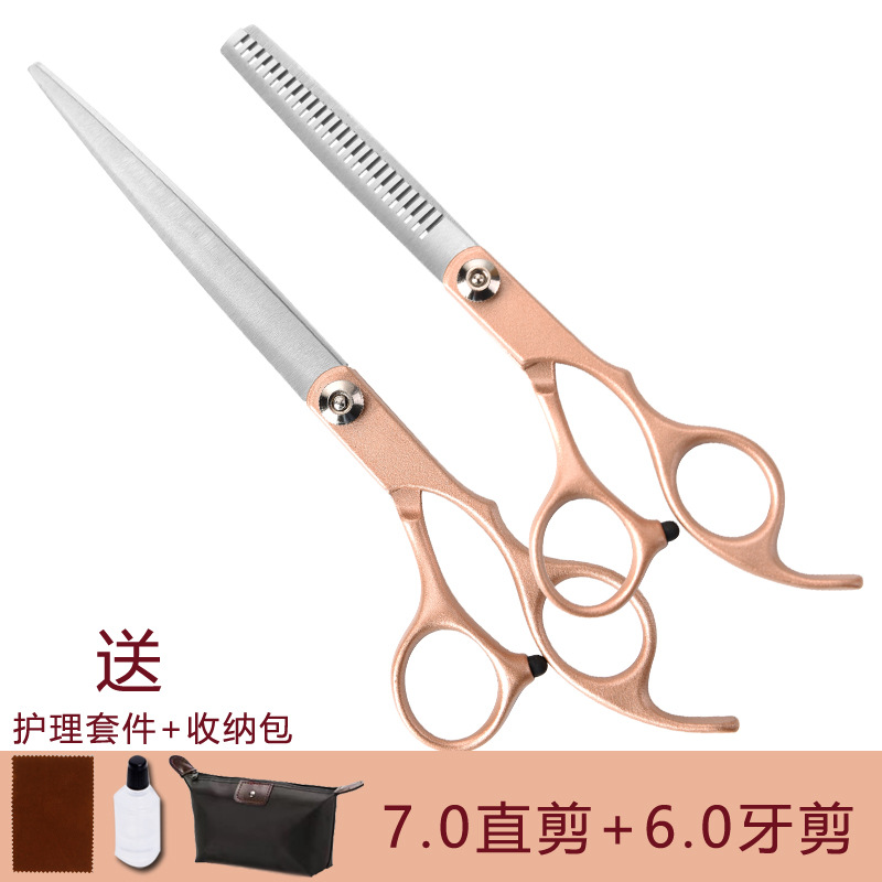 • 로즈 골드-일자 가위 + 이 가위 + 곡선 가위 + 줄 빗 (무료 보관 가방)